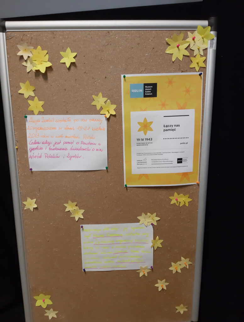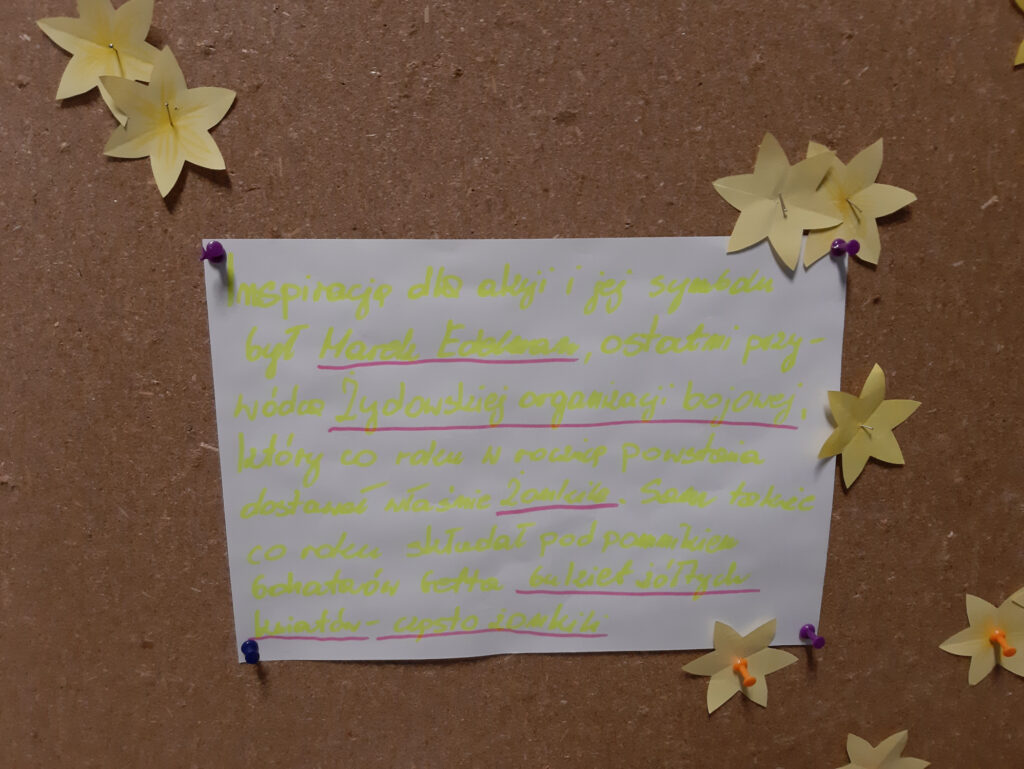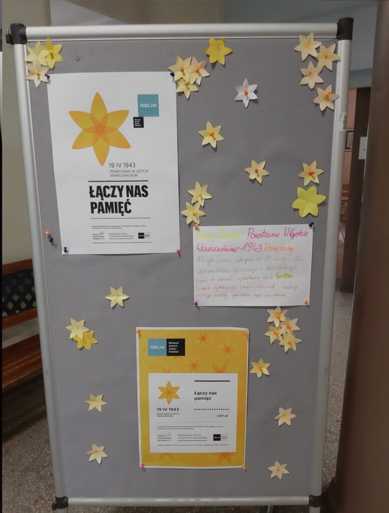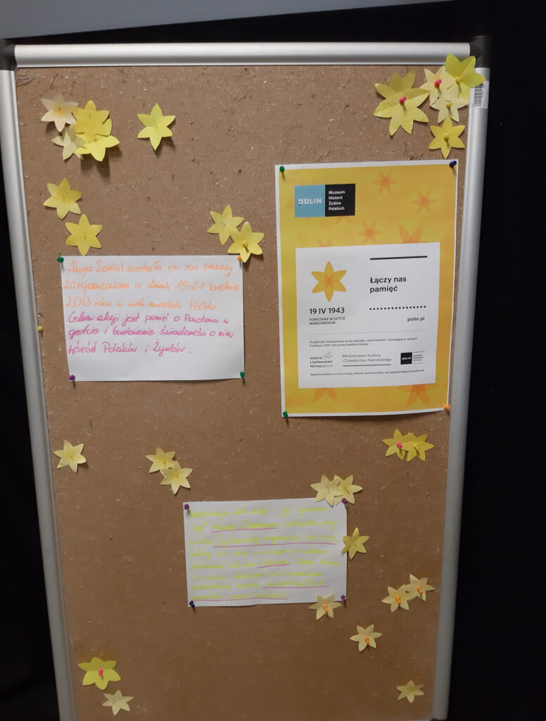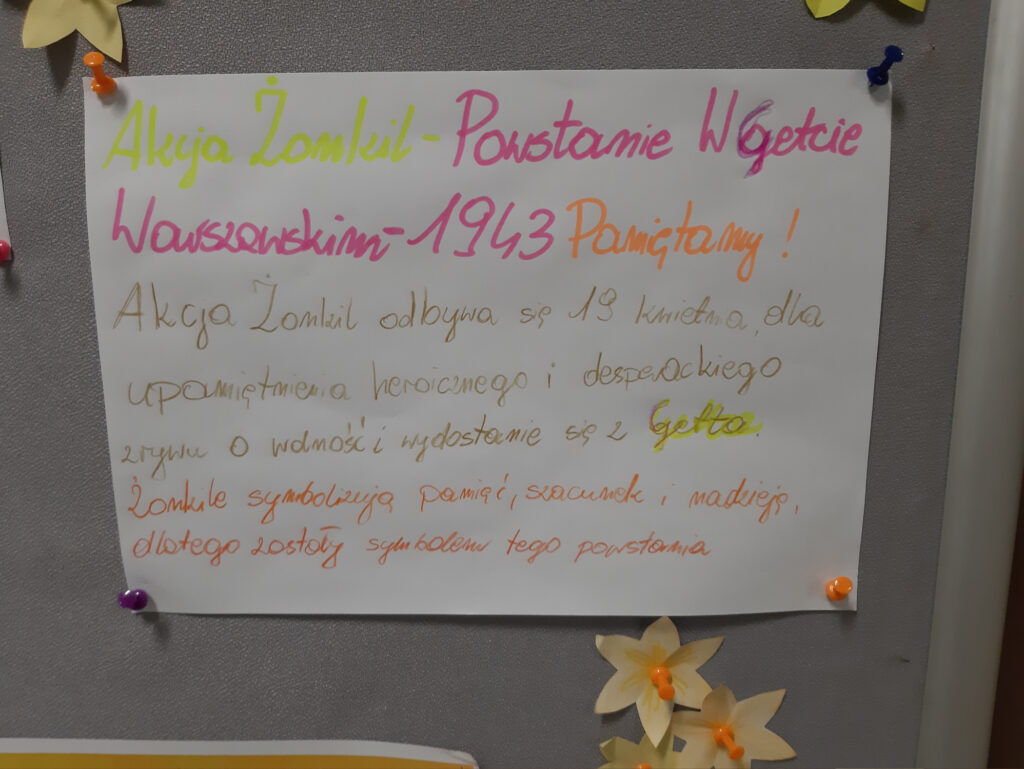 19 kwietnia nasza szkoła wzięła udział w tegorocznej edycji akcji społeczno-edukacyjnej „Żonkil”, którą organizuje Muzeum Historii Żydów Polskich – POLIN. Z tej okazji uczniowie zapoznali się z tematyką powstania w getcie warszawskim – największego zrywu Żydów podczas II wojny światowej oraz osadnictwa żydowskiego na terenach Polski.