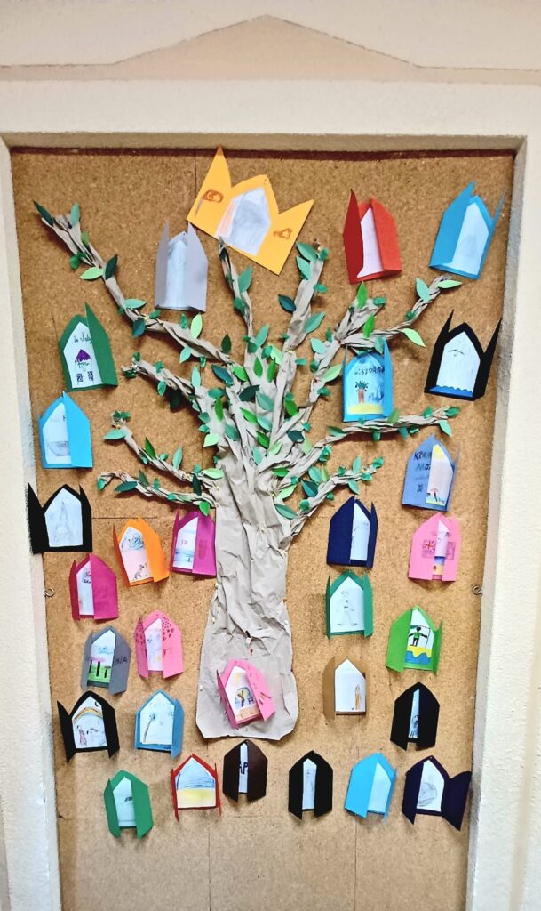 Ostatni miesiąc roku szkolnego, poprzedzający dwumiesięczny okres wakacji, skłonił nas do poznawania interesujących miejsc w Polsce i na świecie. Podziwialiśmy znane i mniej znane zabytki, oglądaliśmy filmy i rozwiązywaliśmy quizy zamieszczone na platformach edukacyjnych. Opowiadaliśmy o miejscach, które odwiedziliśmy i o tych, do których się wybieramy oraz wykonaliśmy „furteczki” do wymarzonych, bajkowych, wakacyjnych miejsc.
