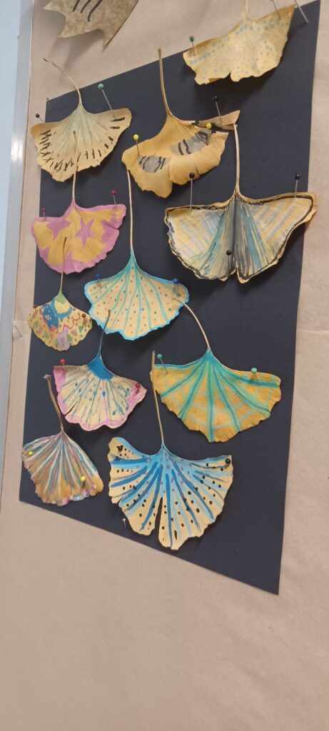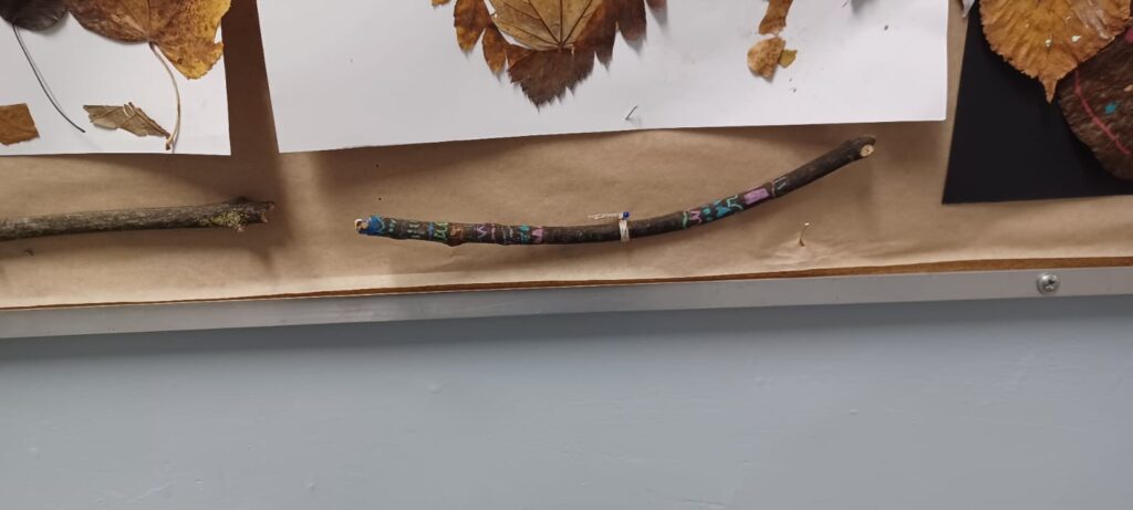 Podczas niektórych zajęć tworzyliśmy prace inspirowane naturą i folklorem. Korzystaliśmy z naturalnych materiałów i zdobiliśmy je motywami ludowymi. Powstały kolorowe liście i patyki udekorowane wzorami malowanymi farbami. Rozwijaliśmy swoją wyobraźnię, kreatywność i wrażliwość estetyczną.