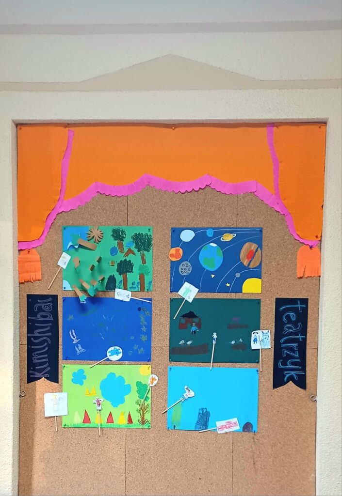 Przy okazji Dnia Postaci z Bajek wykonaliśmy własne kukiełki oraz przygotowaliśmy plansze do mini-teatrzyków kamishibai. Po przygotowaniach odbyły się krótkie przedstawienia, w których prezentowaliśmy scenki z udziałem stworzonych przez siebie bohaterów.