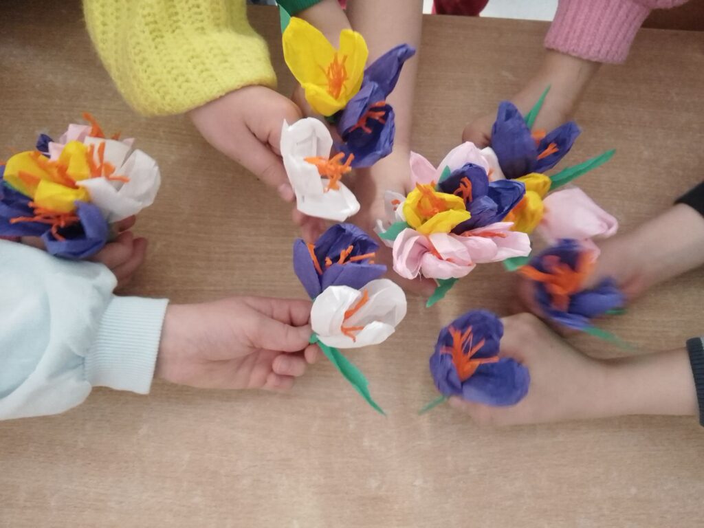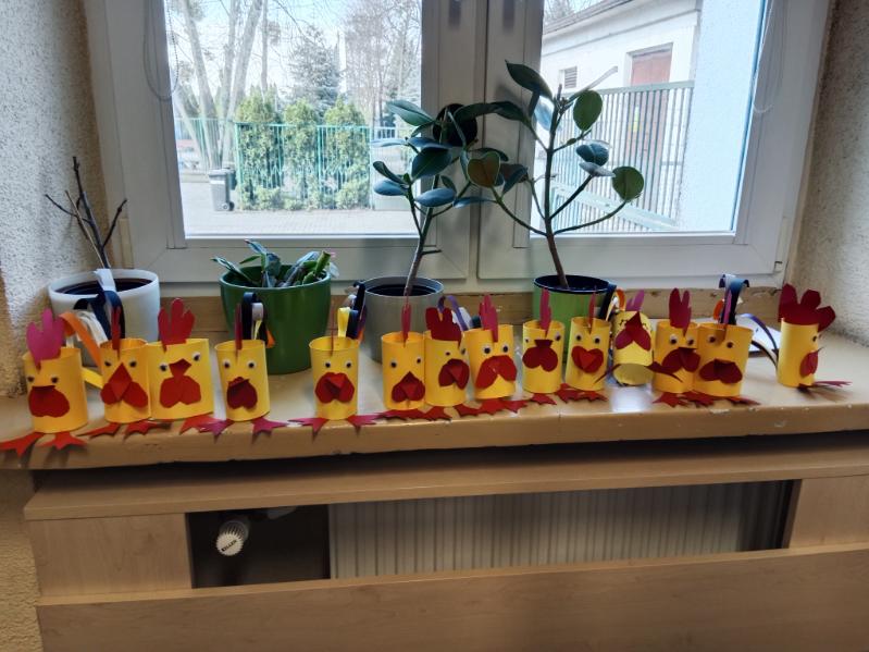 W tym roku w jednym miesiącu witaliśmy początek wiosny i przygotowywaliśmy się do wiosennej przerwy świątecznej. W związku z tym tematyka i działania podejmowane na naszych świetlicowych zajęciach dotyczyły obu tych obszarów. Tworzyliśmy prace, wybierając słoneczne i soczyście zielone barwy. Nasze pomieszczenia zostały udekorowane marcową mieszanką warunków atmosferycznych, wczesnowiosennymi kwiatami, wiosennymi krajobrazami, świeżym, gotowym do spożycia szczypiorkiem oraz wielkanocnymi pisankami, kogucikami i barankami. Każdy słoneczny i cieplejszy dzień sprawiał radość i dodawał energii do pracy i zabawy.