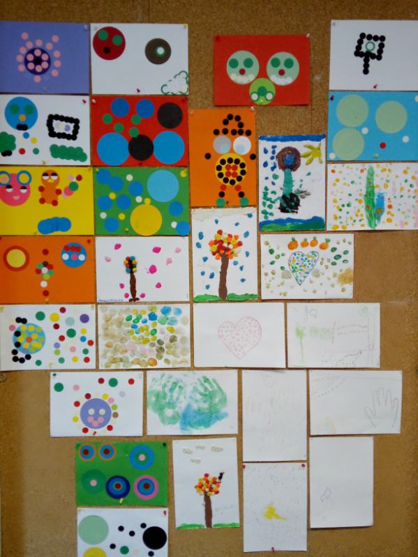 W tym roku także nie zapomnieliśmy o Międzynarodowym Dniu Kropki, mimo, że 15.09 przypadał na niedzielę. Wspominaliśmy historię dziewczynki Vashti, która nie wierzyła w siebie i w swoje umiejętności. Jednak jej praca prezentująca kropkę spotkała się z zachwytem pani nauczycielki, co bardzo wzmocniło poczucie wartości dziewczynki, a nam dostarczyło atrakcyjnych i niezwykle twórczych możliwości przygotowania prac, których główną bohaterką była kropka.