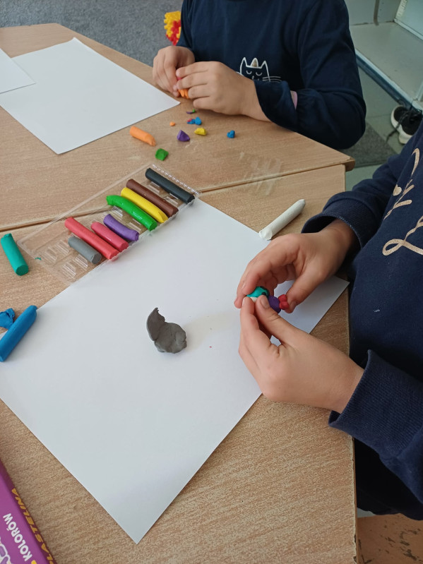 - Bawiliśmy się plasteliną, tworząc kolorowe prace prezentujące Plastusiów,