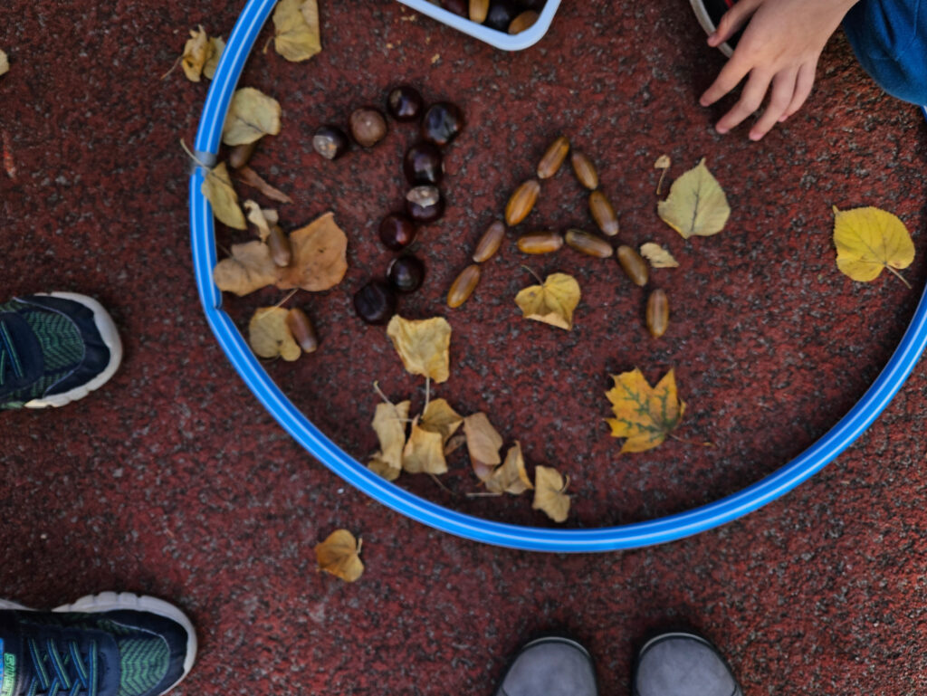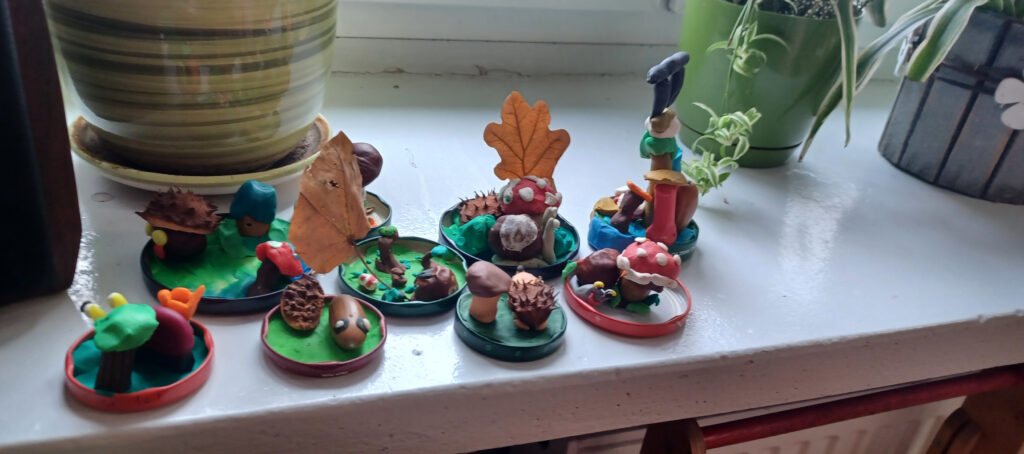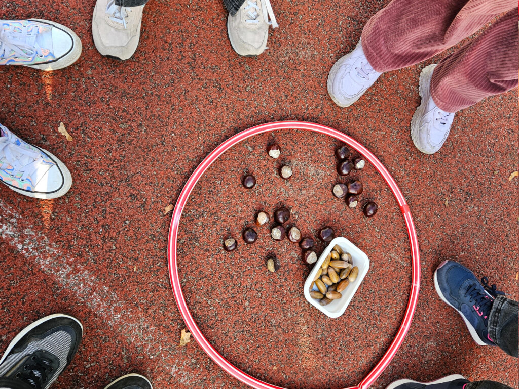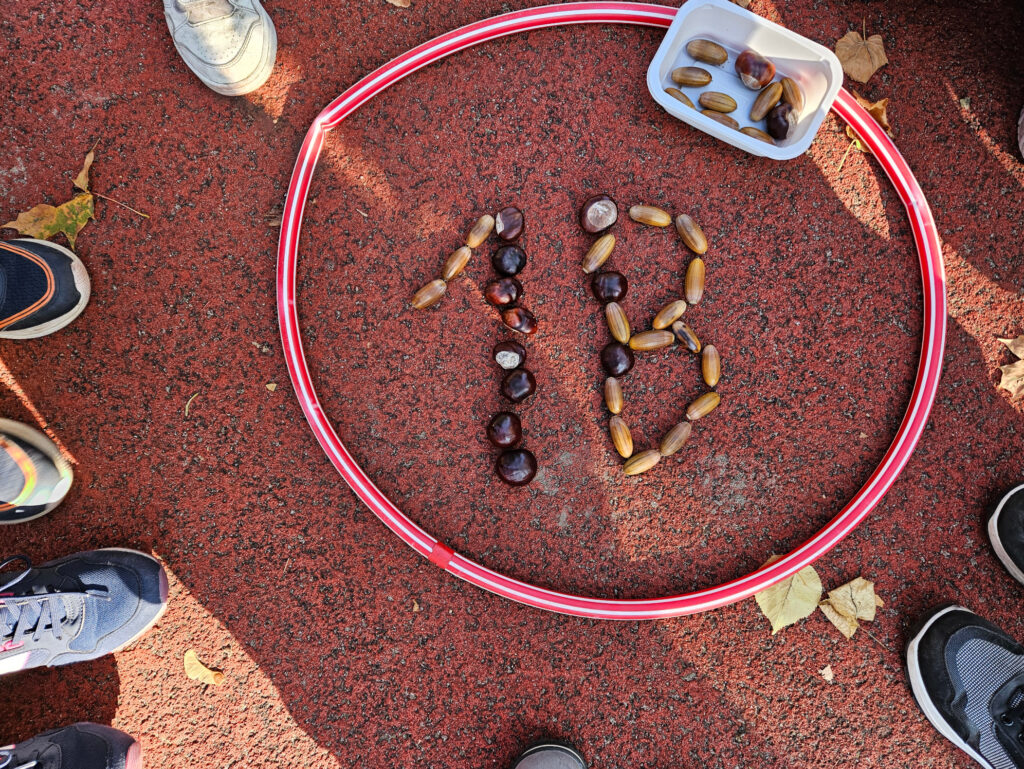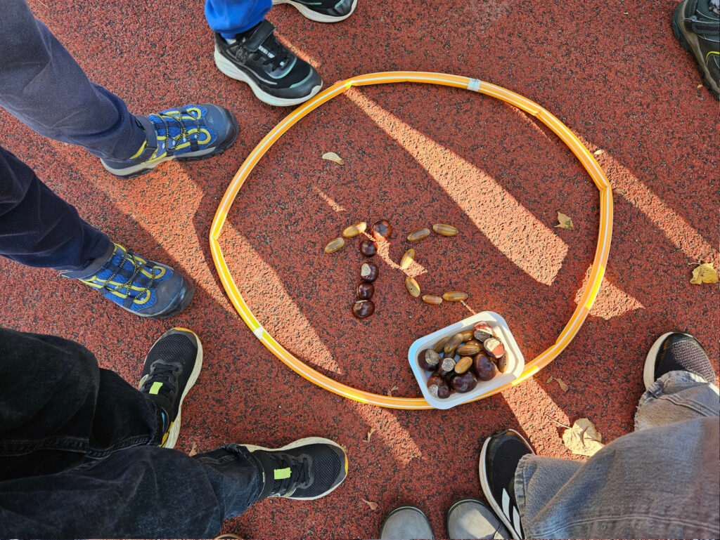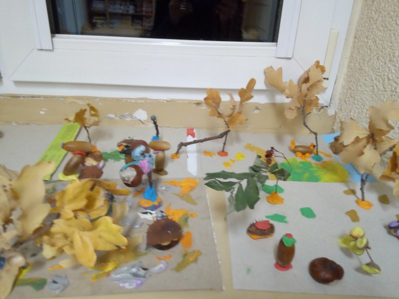 I także w tym roku miło było dzieciom wykonywać poszczególne konkurencje i zadania używając kasztanów, żołędzi, liści i owoców. Należało rozpoznać liście drzew i dobrać do nich właściwe podpisy, połączyć owoce lub nasiona z odpowiednimi drzewami, rozdzielić żołędzie od kasztanów, ułożyć logo (nazwę) klasy z owoców dębów i kasztanowców, a w konkurencjach sprawnościowych jak najszybciej biegać i przenosić kasztany.