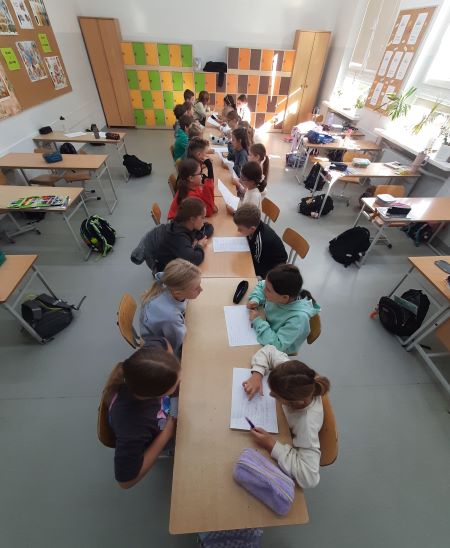 W każdy piątek w klasie 3c poświęcamy czas na zajęcia integrujące klasę, dyskusje i omawianie spraw klasowych. To czas poważnych tematów, ale także zabaw. Ostatnio odbył się ,,szybki wywiad”, czyli każde dziecko odpowiadało na te same pytania. Połowa klasy przeprowadzała wywiad a druga odpowiadała. Po kilku minutach następowała zamiana miejsc i osób prowadzących rozmowę. Tak, aby każdy uczeń zadał każdemu pytanie oraz przed każdym odpowiadał. Przykładowe pytania: Jaki jest Twój ulubiony kolor? Co Cię drażni? Co Cię uszczęśliwia? Co zrobiłabyś/zrobiłbyś gdybyś została/został kapibarą? Później wspólnie podsumowaliśmy zebrane informacje. Dzięki takim lekcjom klasa jednoczy się. Dzieci wiedzą, że nie są same. Wszyscy mogą liczyć na wsparcie rówieśników oraz wychowawcy.
