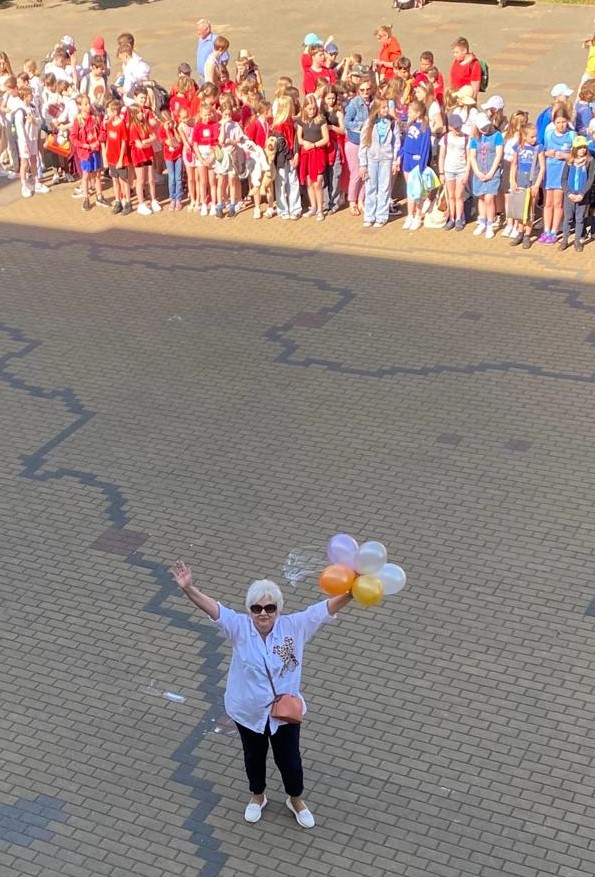 Pani Dyrektor Anna Sobczak powitała uczniów na boisku szkolnym, składając im życzenia, aby nie zatracili w swojej drodze ku dorosłości dziecięcej radości życia i wrażliwości, aby dorośli otaczali ich miłością, zrozumieniem i pozwalali na realizację pasji.