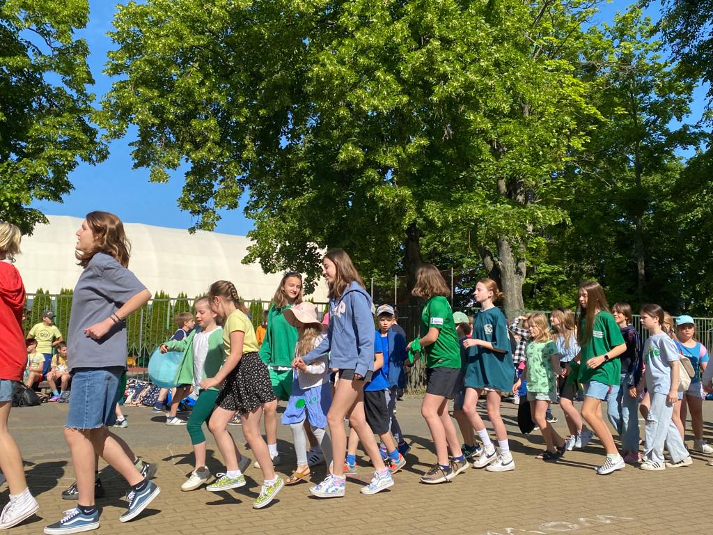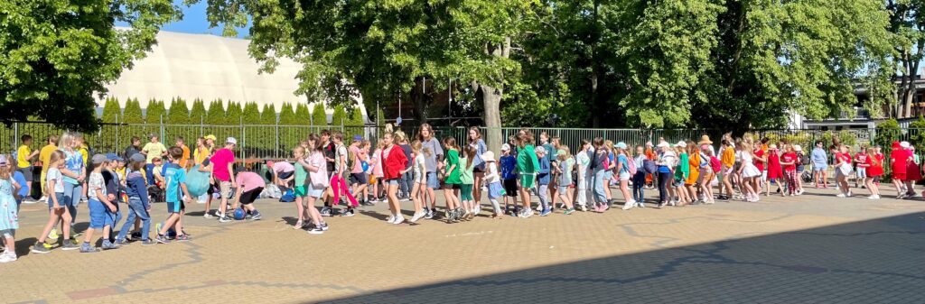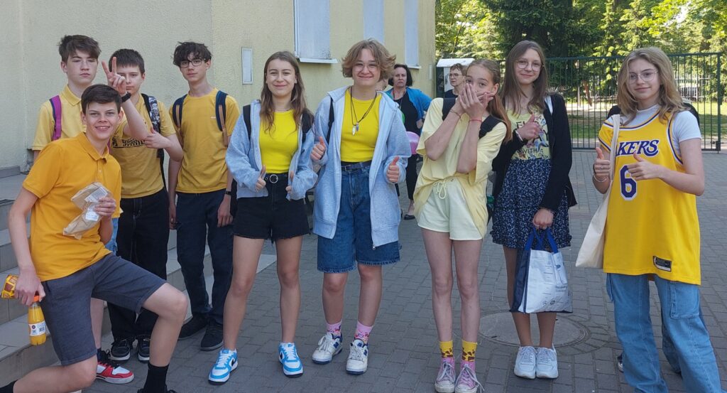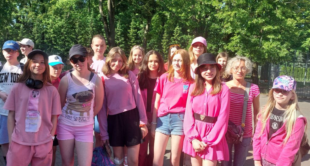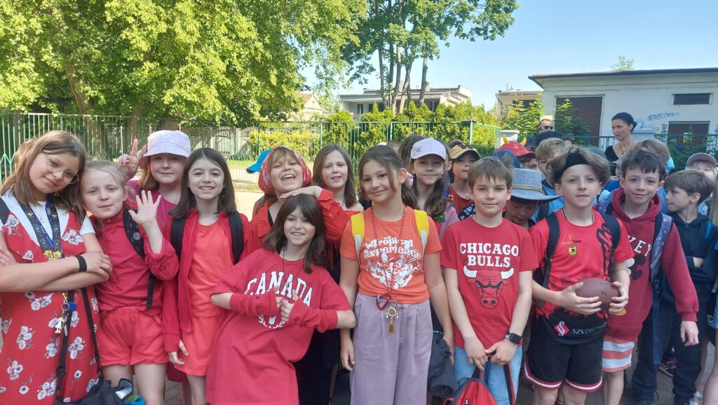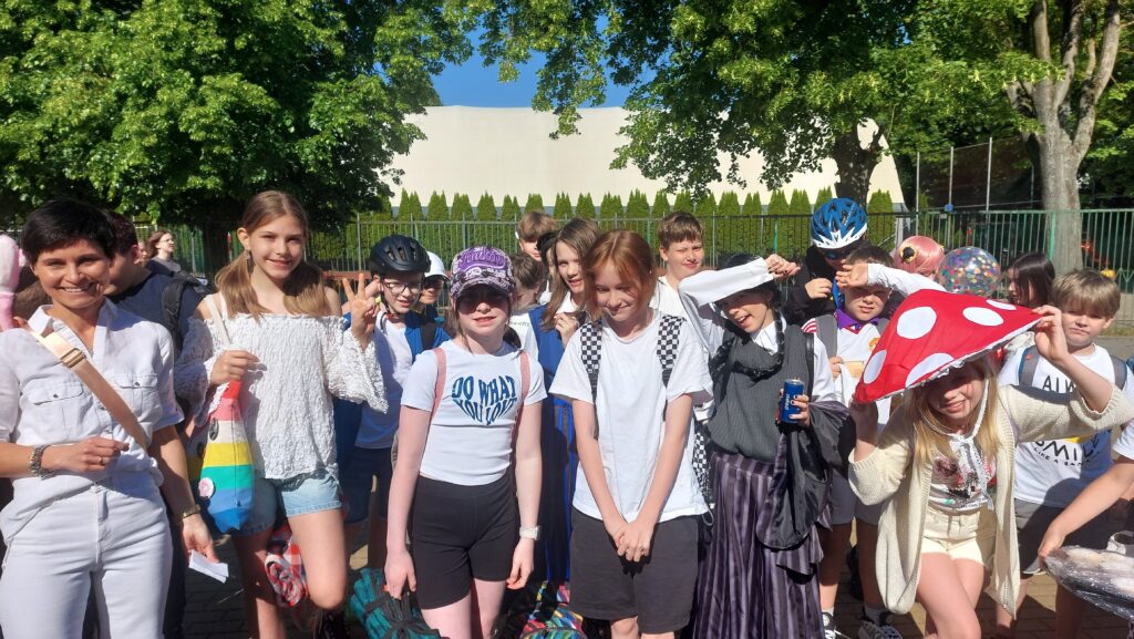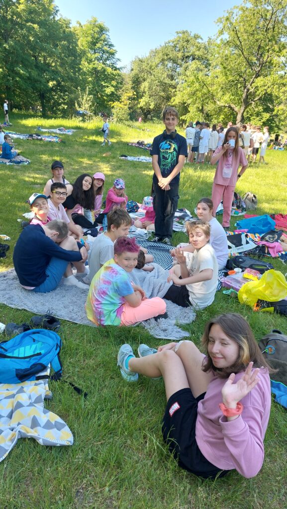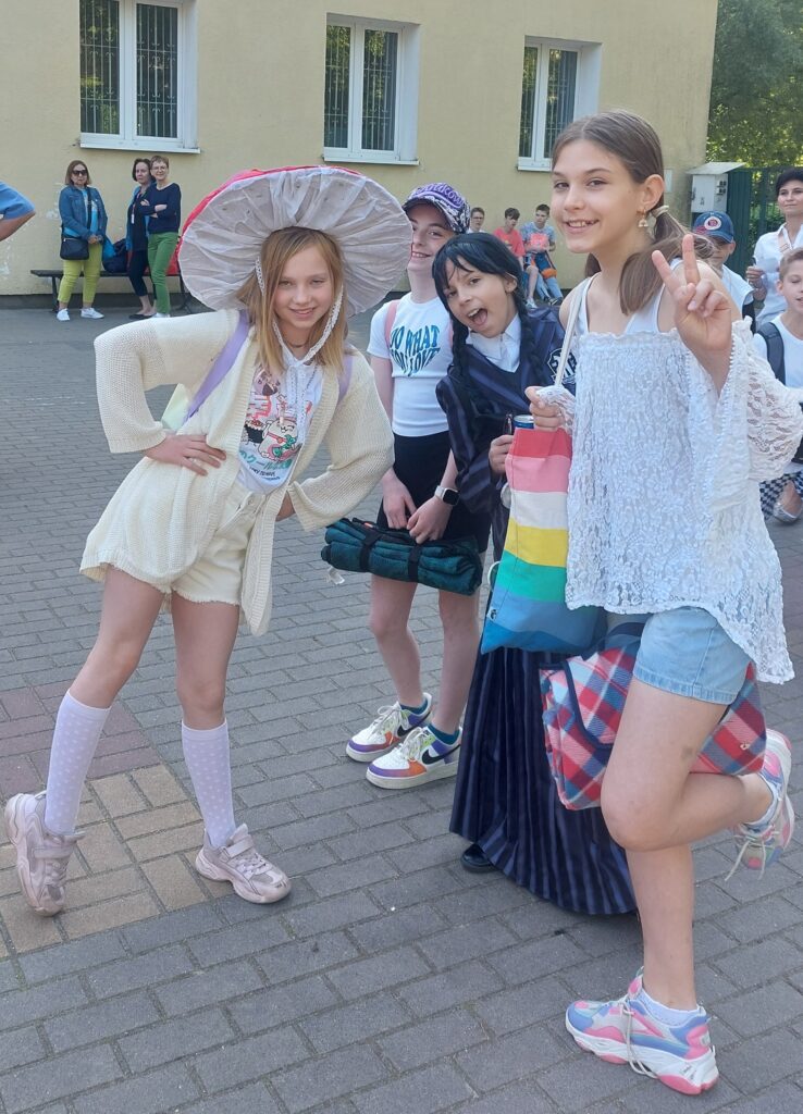 Tego dnia klasy prezentowały ubrania w kolorach, które wcześniej wylosowali dla nich przewodniczący. Widok był niesamowity. Zabawę rozpoczęliśmy już na boisku wspólnymi tańcami. Później kolorowy korowód składający się ze wszystkich nauczycieli i uczniów naszej szkoły przeszedł na Cytadelę na wspólny piknik.