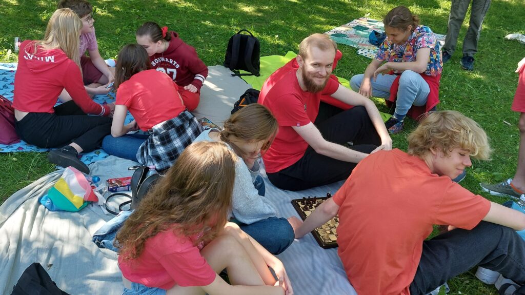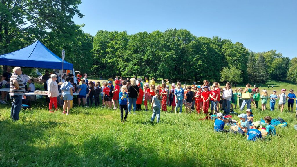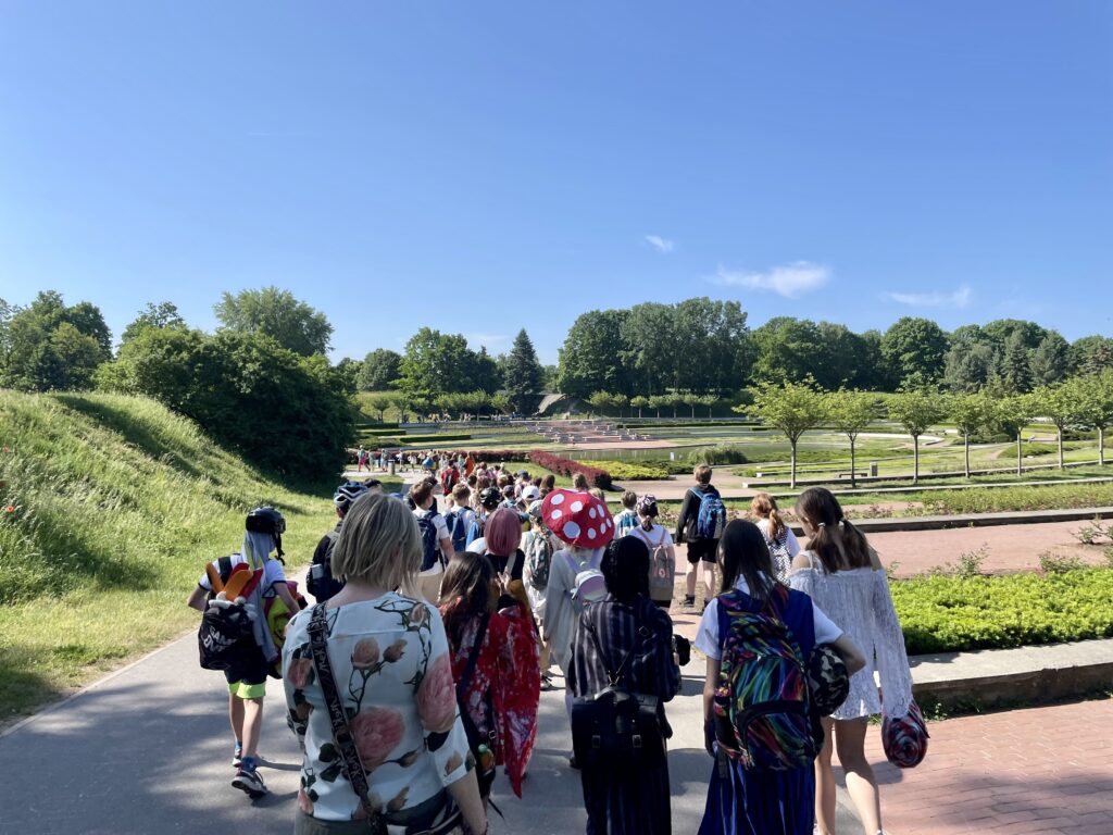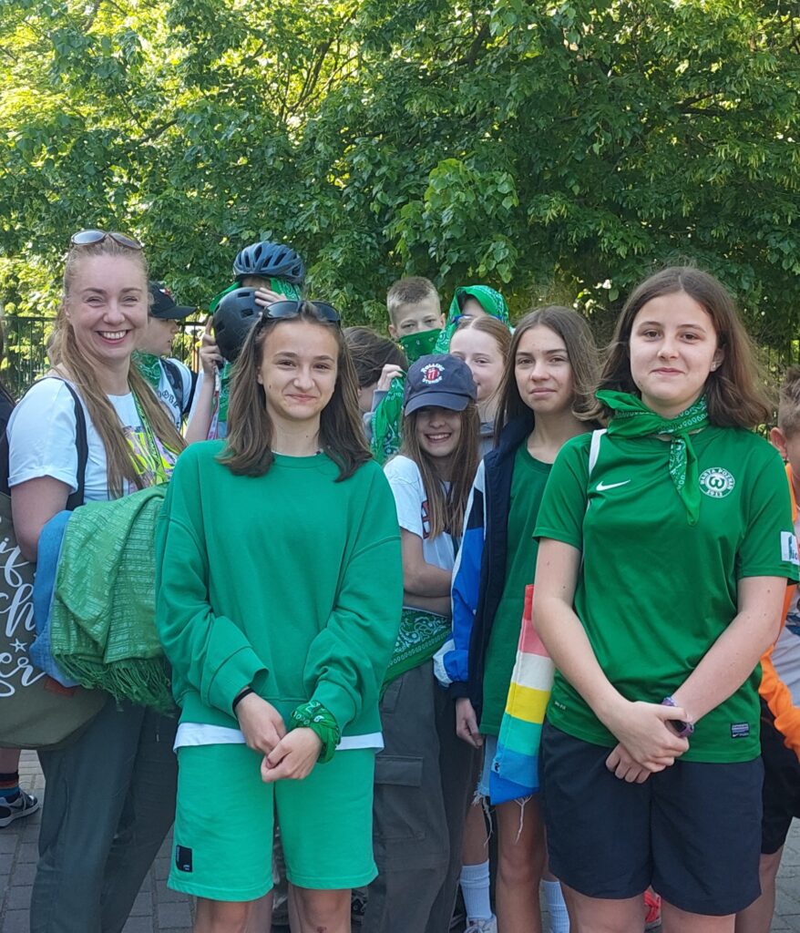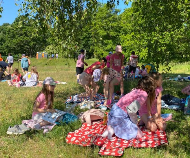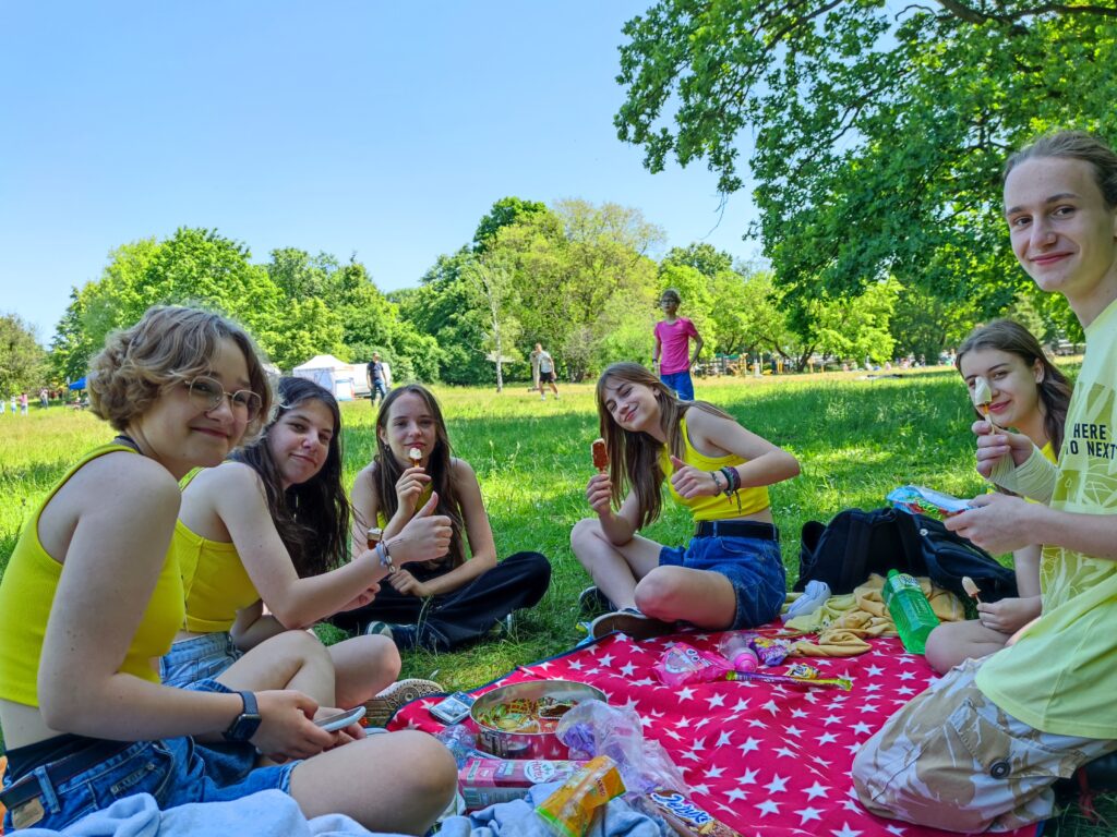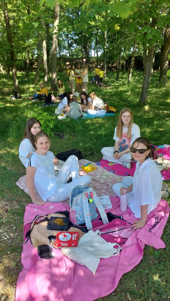 Tego dnia klasy prezentowały ubrania w kolorach, które wcześniej wylosowali dla nich przewodniczący. Widok był niesamowity. Zabawę rozpoczęliśmy już na boisku wspólnymi tańcami. Później kolorowy korowód składający się ze wszystkich nauczycieli i uczniów naszej szkoły przeszedł na Cytadelę na wspólny piknik.