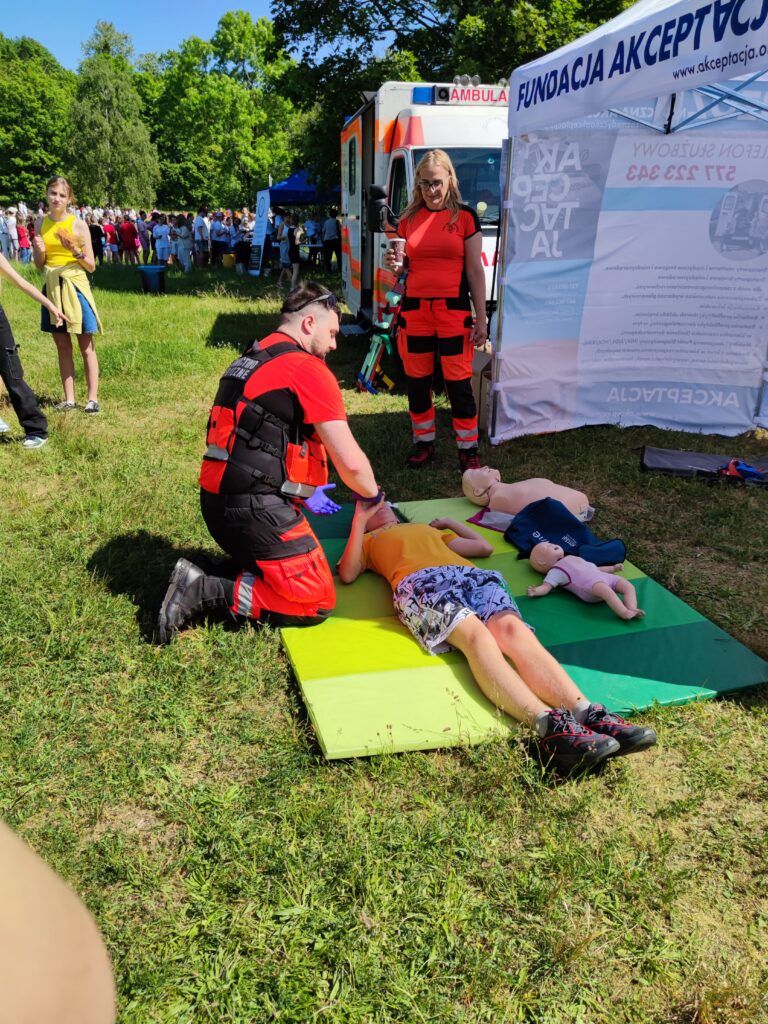 Przez kilka godzin dzieci sprawdzały swoje umiejętności w grach planszowych. zabawach sportowych, grach plenerowych oraz zajęciach plastycznych. Miały okazję uczestniczyć w pokazie udzielania pierwszej pomocy na Fantomie, zobaczyć wnętrze ambulansu i  zapoznać się z jego wyposażeniem.