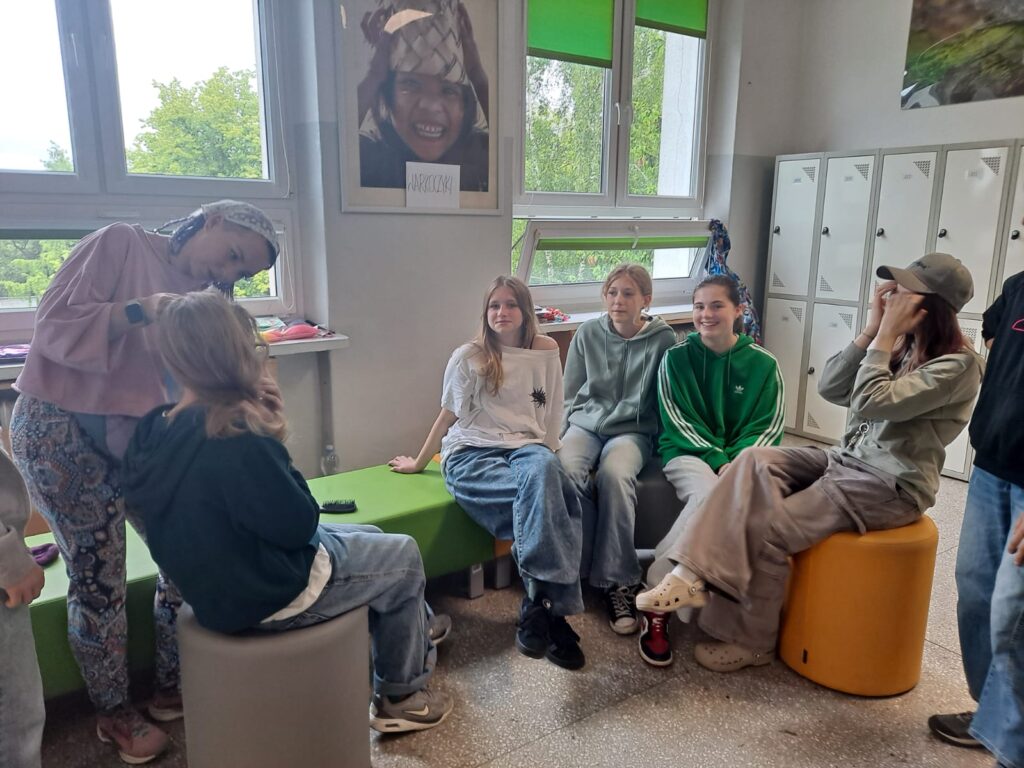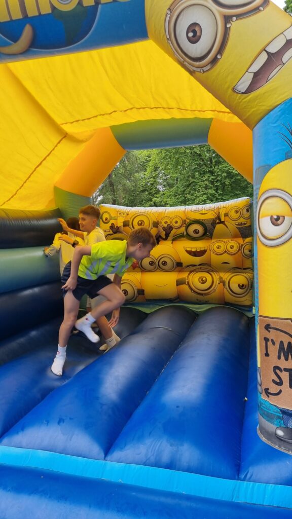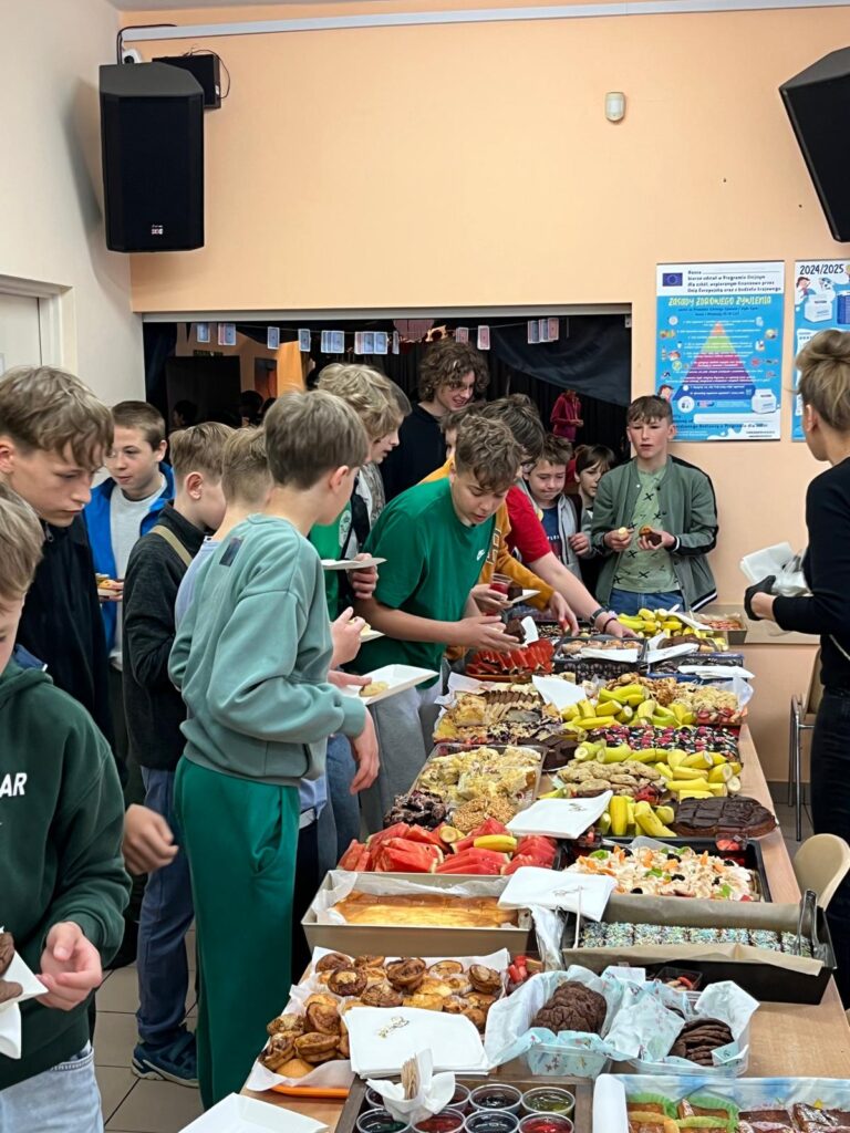 Ze względu na pogodę pikniki klasowe przeniosły się do sal i szkolnych korytarzy, gdzie uczniowie odpoczywali na kocach, bawili się przy grach planszowych i kosztowali pyszności. Ciasta, owoce, desery i lody smakowały wybornie. Dzień zakończył się wspólnym tańcem „Belgijka” – radosnym finałem,  w którym wzięli udział wszyscy uczniowie, nauczyciele  oraz rodzice.