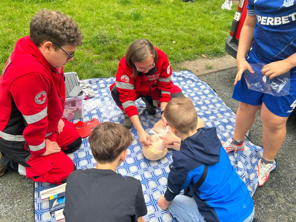 • Strefa Sportowa – pełna ruchu, zdrowej rywalizacji i zabawy. Na sali gimnastycznej   oraz szkolnych korytarzach dzieci mogły sprawdzić swoje umiejętności w rzutach do kosza, siatkówce, rzucie piłką lekarską, strzałach na bramkę piłkarską i hokejową, a także w grach zręcznościowych takich jak rzuty woreczkiem czy podbijanie piłki tenisowej.