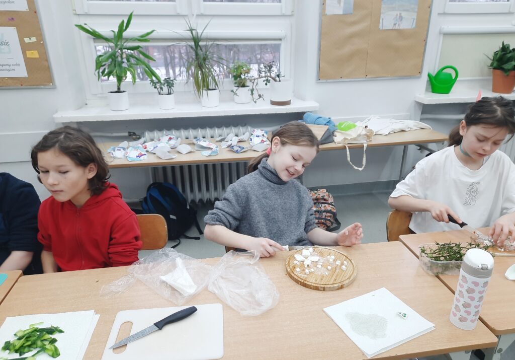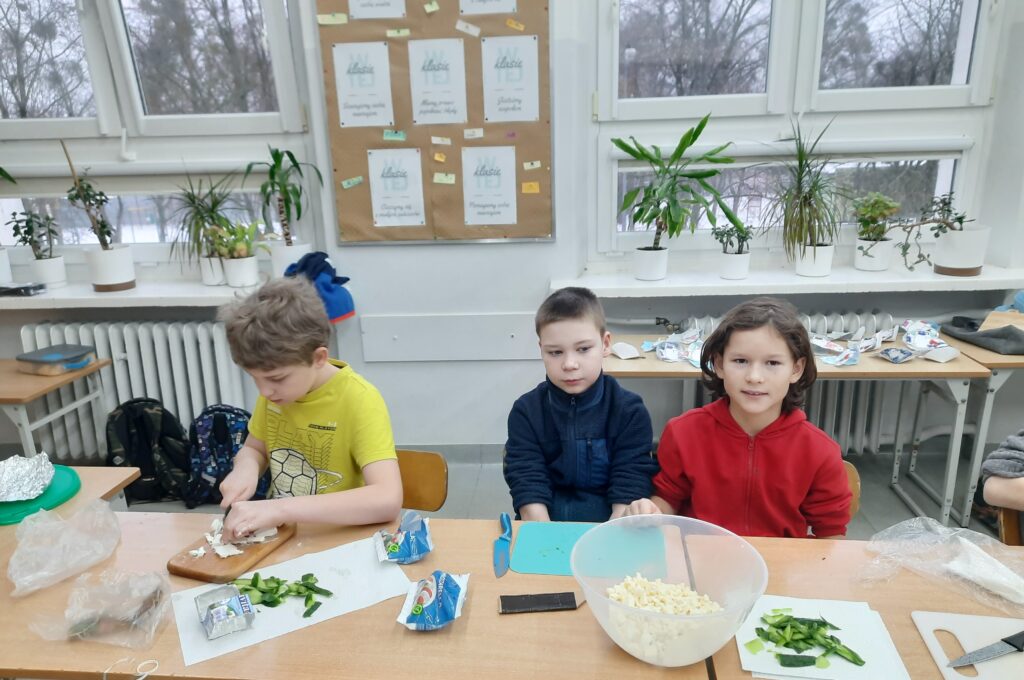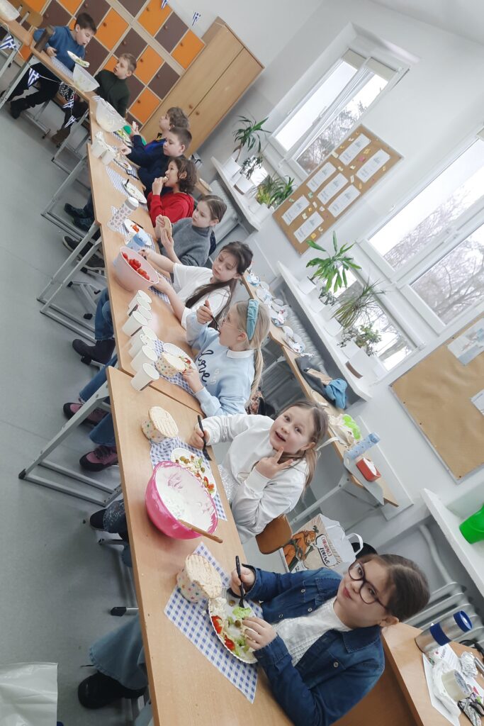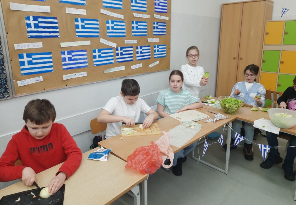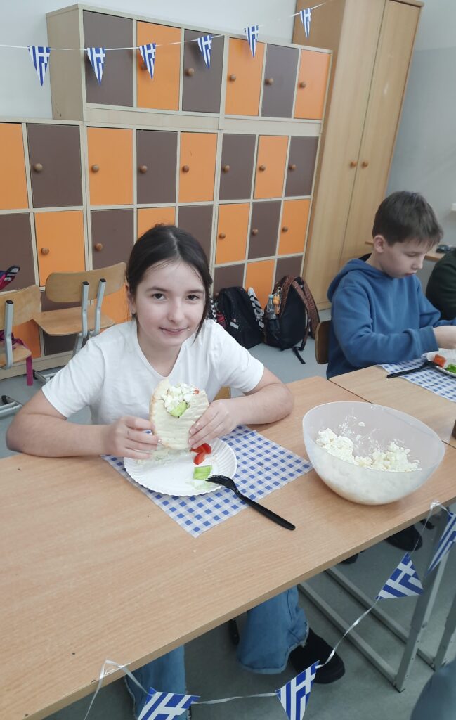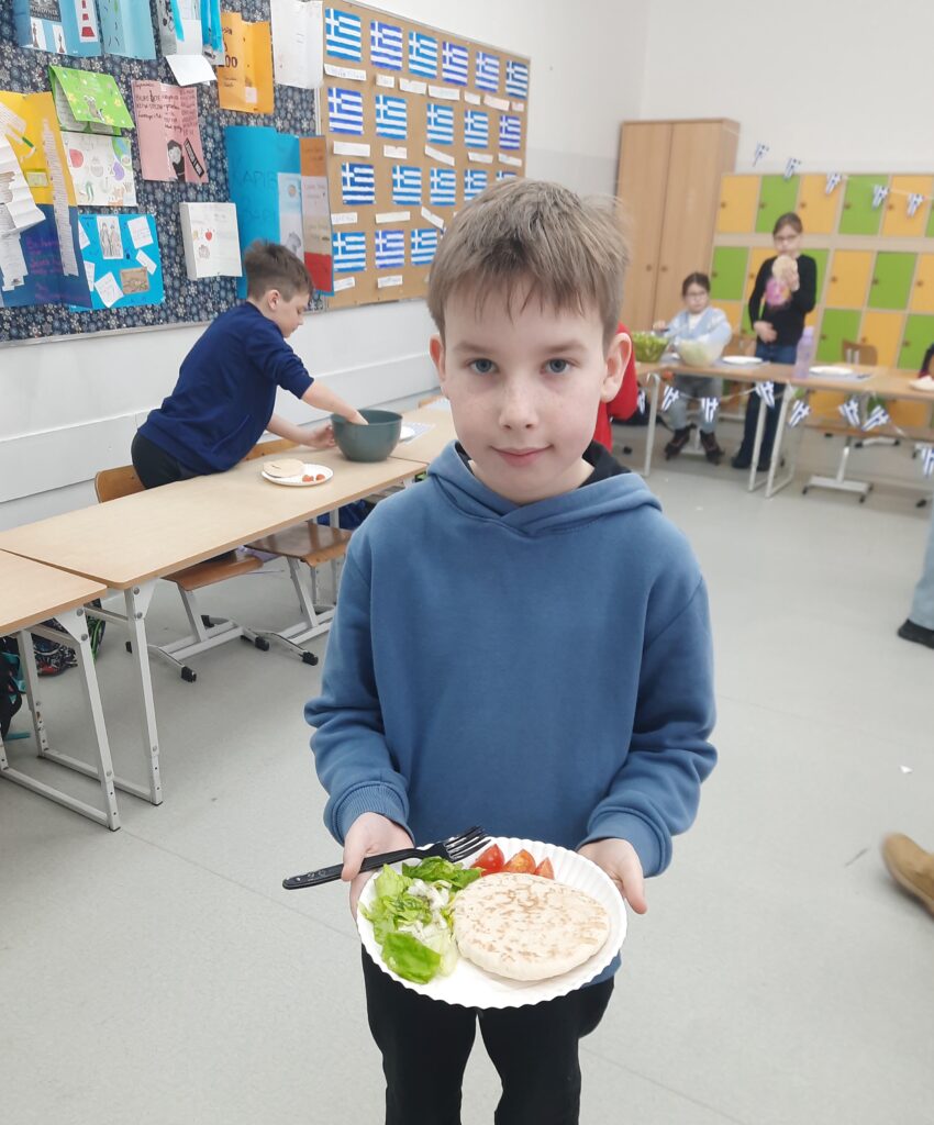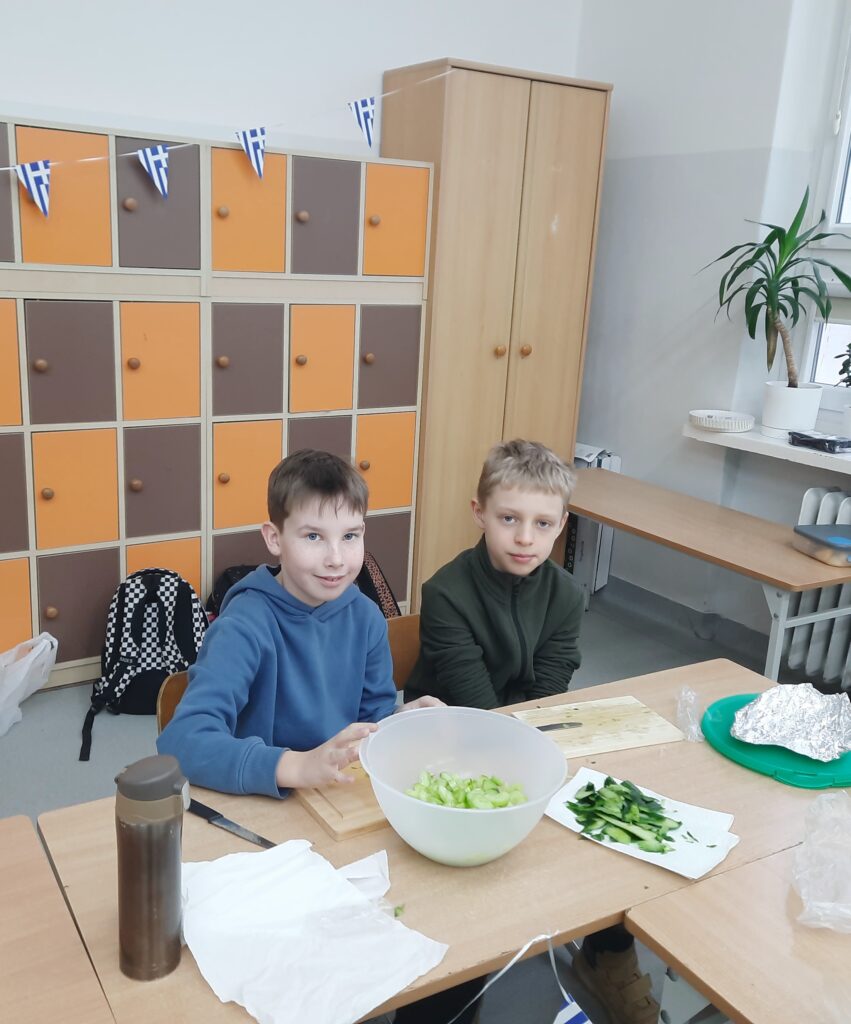 Zwieńczeniem działań była prawdziwa uczta w stylu śródziemnomorskim. Uczniowie wspólnie przygotowali sałatkę grecką oraz sos tzatziki, a Pani Dominika serwowała na ciepło chlebki pita.