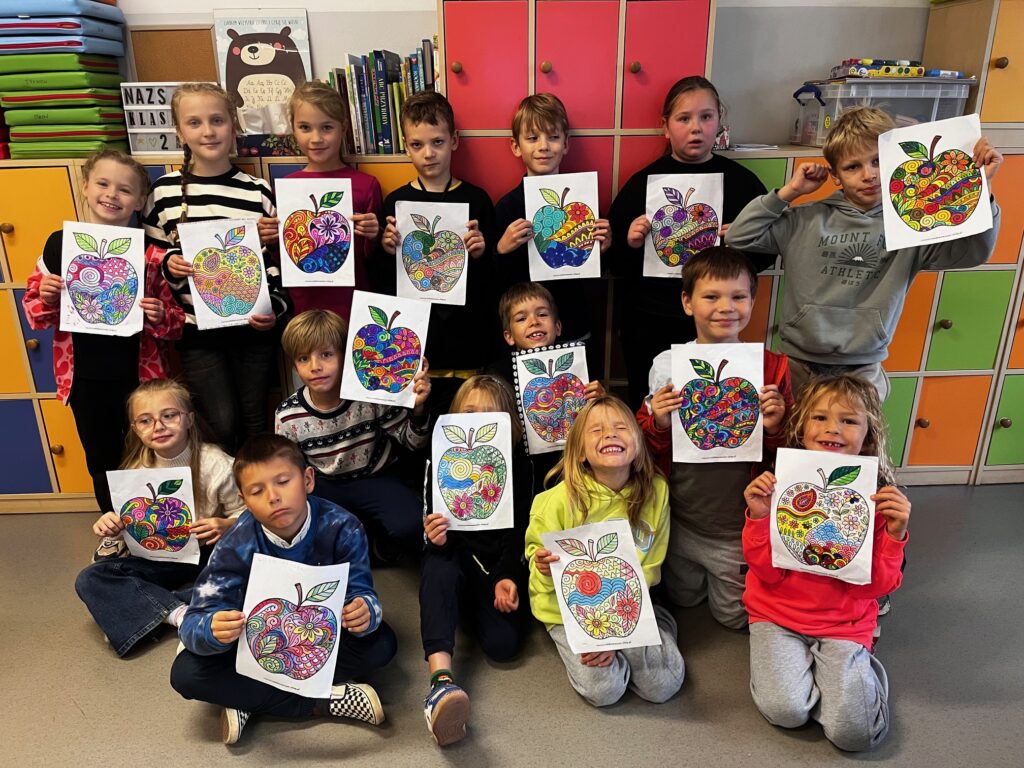 W ostatnich dniach klasa 2a świętowała Dzień Jabłka. Oprócz przepysznej degustacji uczniowie wykonywali szereg zadań- kodowanie z użyciem maty, zadania w języku angielskim oraz kolorowanki antystresowe. Świętowanie tego dnia był też wspaniałą okazją do kształtowania zdrowych nawyków żywieniowych u dzieci tj. spożywanie codziennej porcji owoców.