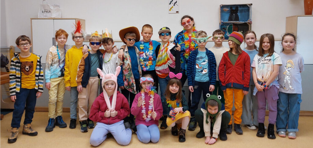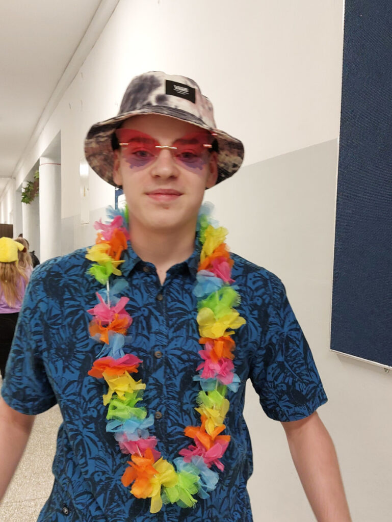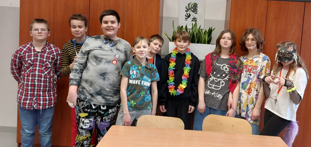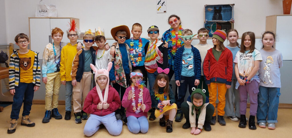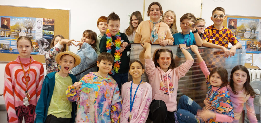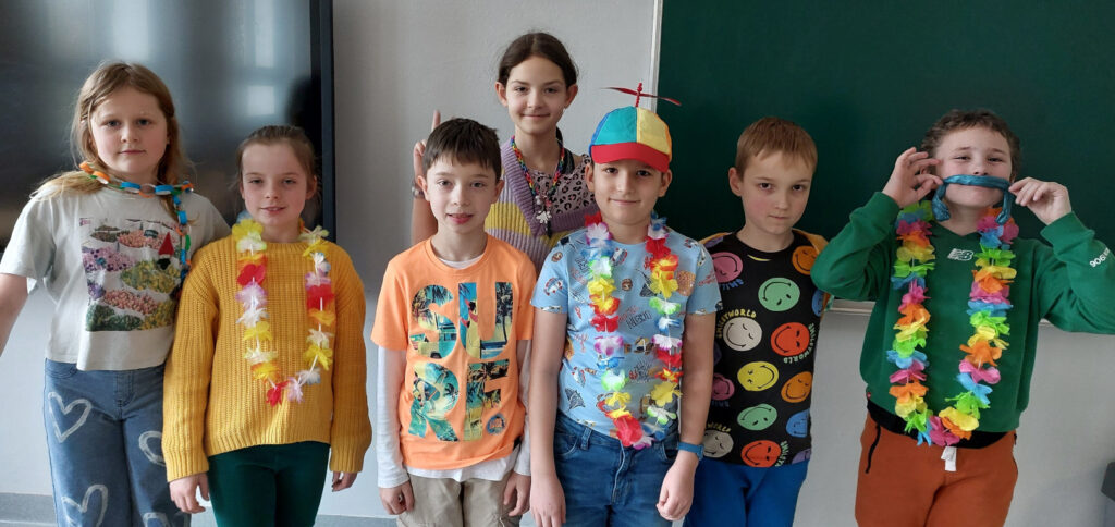 Samorząd Uczniowski zaprosił wszystkich do wspólnej zabawy. Nauczyciele i uczniowie założyli, naszyjniki z kolorowych kwiatów, hawajskie koszule, fantazyjne kapelusze i różowe okulary pokazując w ten sposób ile jest w nich optymizmu.