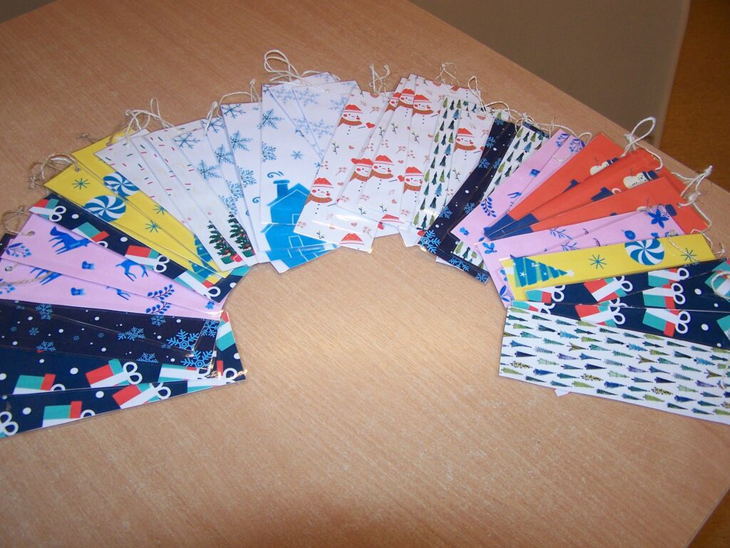 Na zakończenie wszyscy uczestnicy spotkania otrzymali przepiękne świąteczno-zimowe zakładki do książek, które, mamy nadzieję, będą nam towarzyszyć w samodzielnym czytaniu i poznawaniu różnorodnych literackich opowieści.