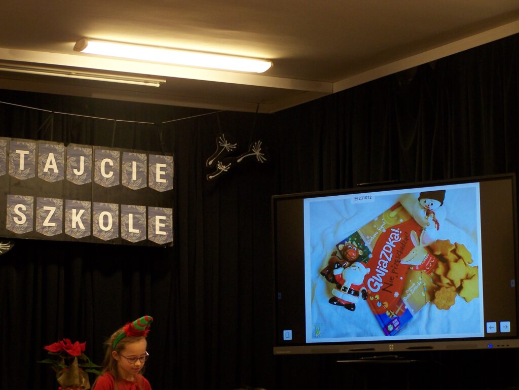 Następnie zaprosiliśmy naszych gości do przeczytania wybranych przez siebie rozdziałów lub całych utworów. Wszystkie były tematycznie powiązane ze Świętami Bożego Narodzenia, co stworzyło bardzo przyjemną przedświąteczną atmosferę. Po wysłuchaniu każdego fragmentu byliśmy zaproszeni do uczestnictwa w quizach sprawdzających uważność naszego słuchania.