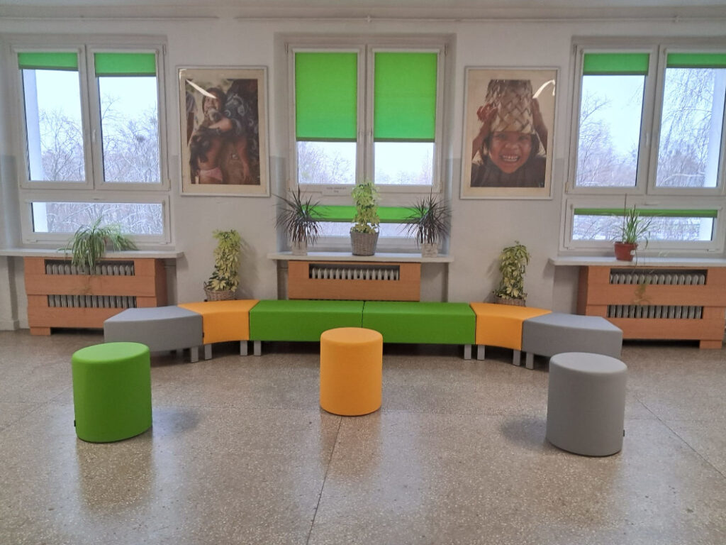 Powrót po przerwie świątecznej wiązał się z miłą niespodzianką. W holu na II piętrze powstał kącik relaksacyjny, w którym znalazł się kolorowy komplet modułowych kanap. Możemy tam odpoczywać, grać w gry logiczne oraz wspólnie spędzać czas.