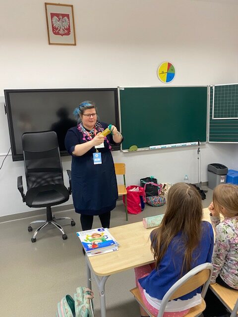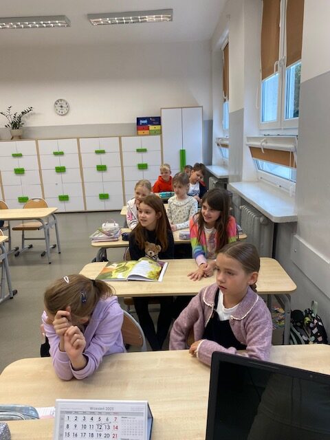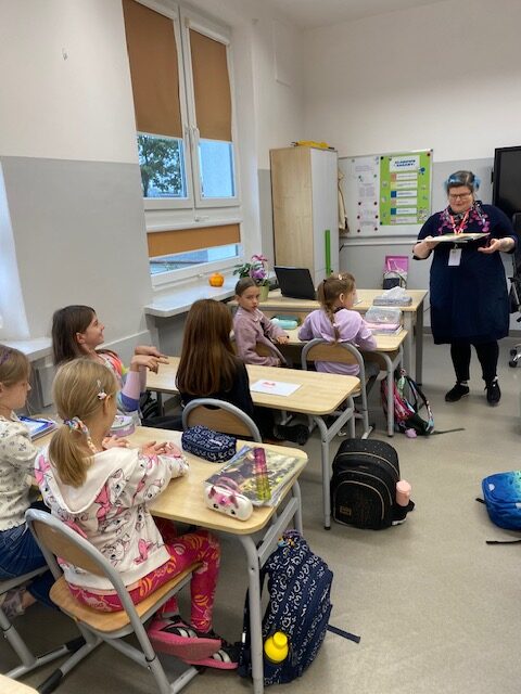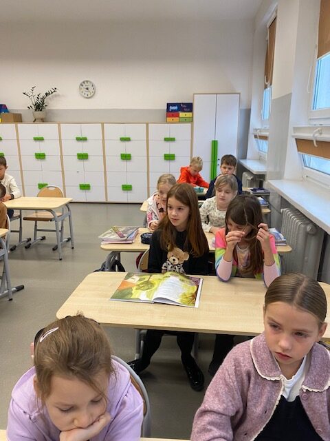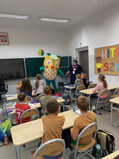 Spotkali się z wolontariuszami p. Jagodą i p. Pawłem oraz maskotką fundacji- Wielką Sową. Dziewczynki wraz z wolontariuszką przeczytały z podziałem na role książkę „Wędrówki z Melisą”. Uczniowie uczyli się identyfikować i nazywać własne emocje, przyjmować nowe wzorce myślenia. Następnie dziewczynki i chłopcy wykonali „butelki do odstresowania”.