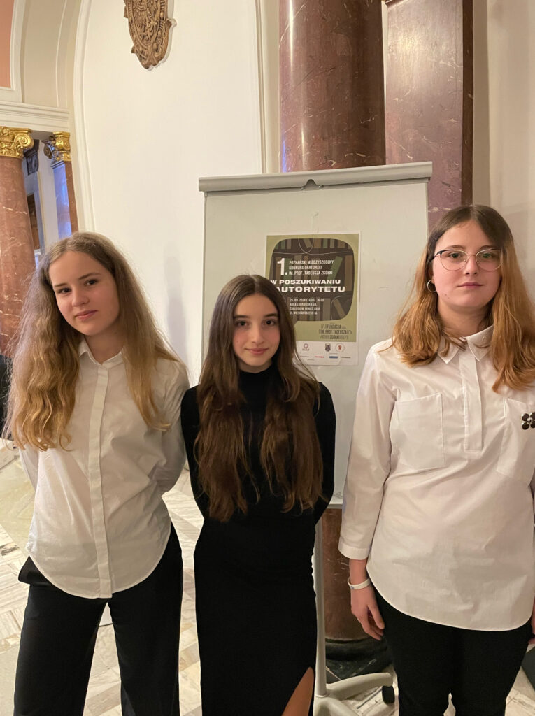 Na oczach tak zacnego grona, uczestnicy, podzieleni na dwie grupy wiekowe: szkoły podstawowe i szkoły ponadpodstawowe, zaprezentowali swoje przemyślenia na temat poszukiwania autorytetu. Możemy być bardzo dumni, ponieważ nasze uczennice sięgnęły po najwyższe laury.