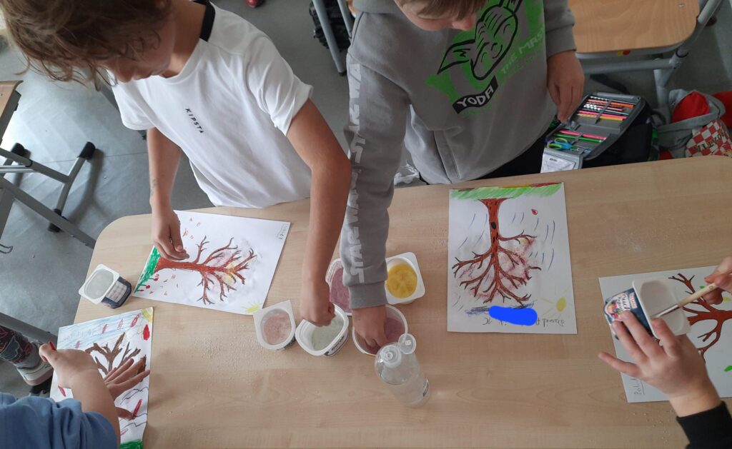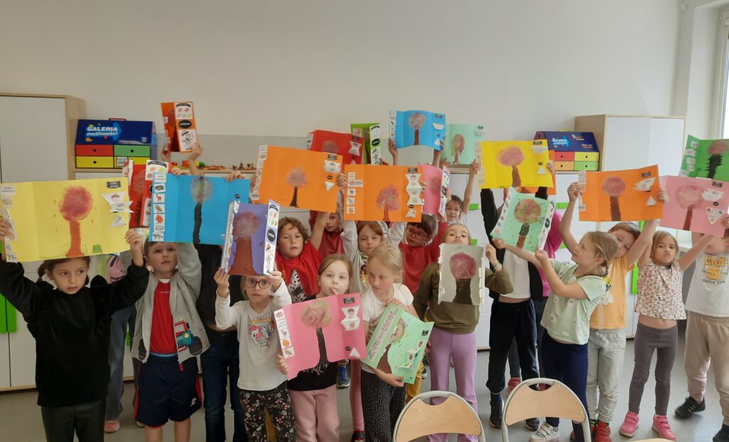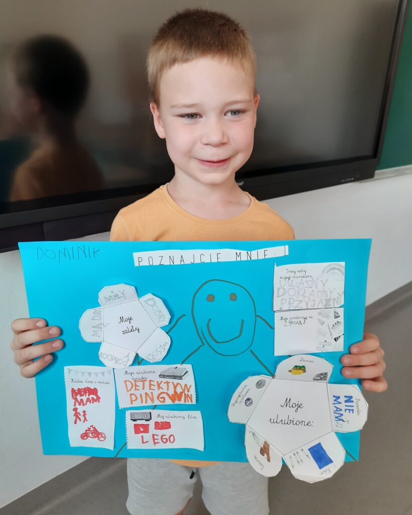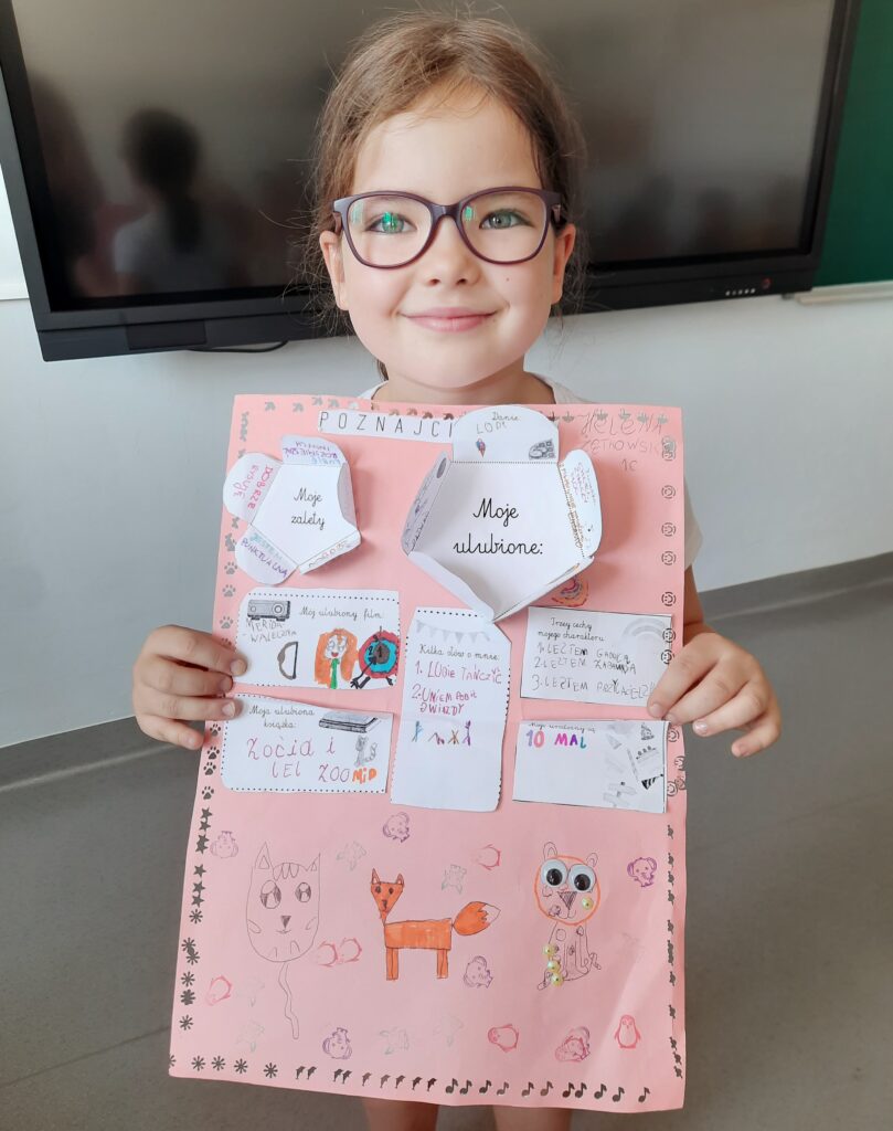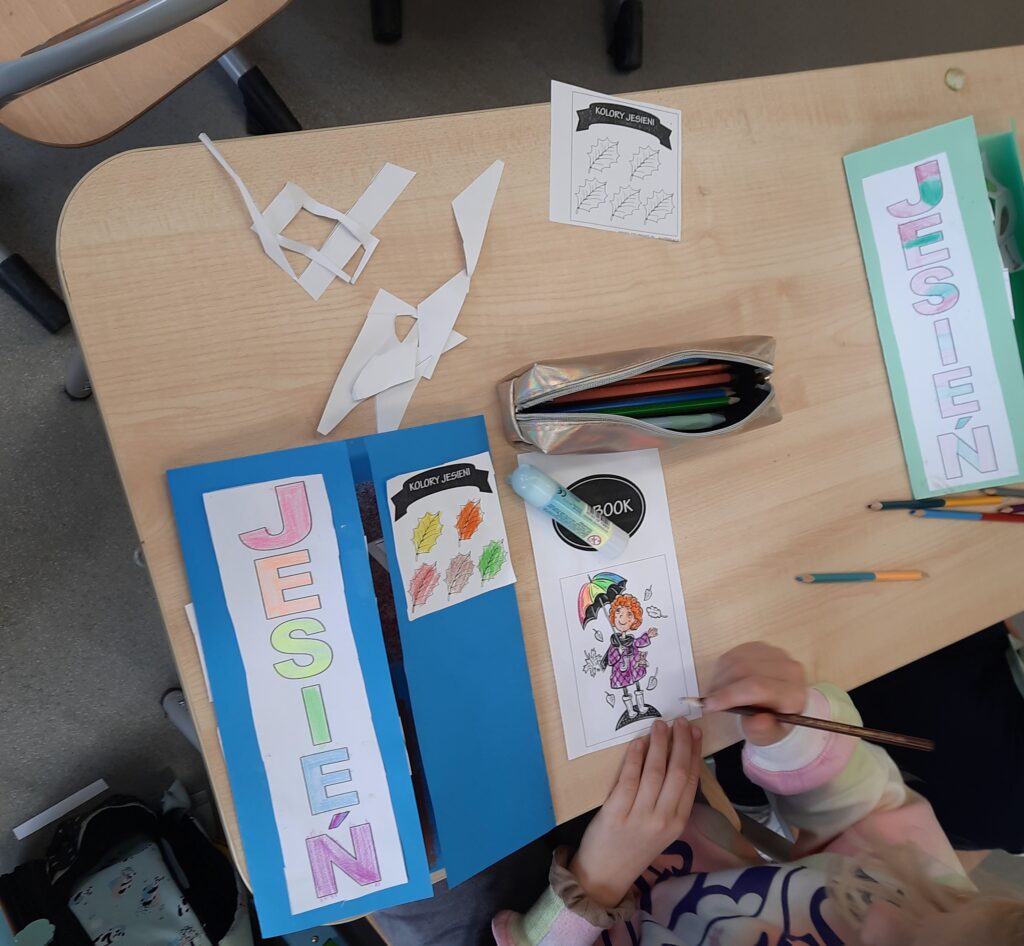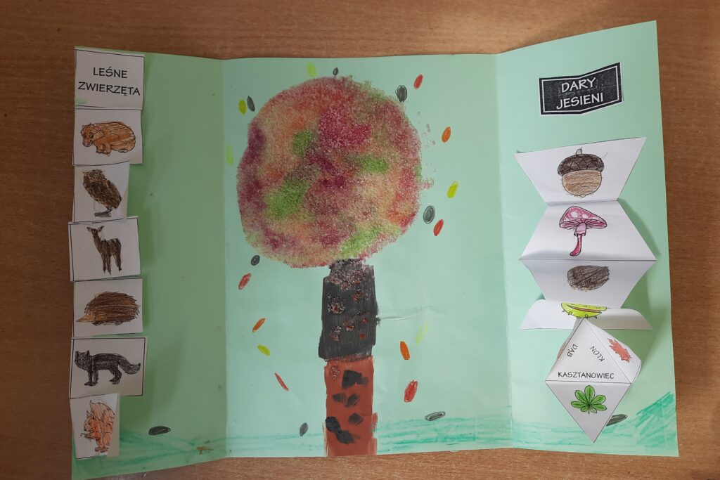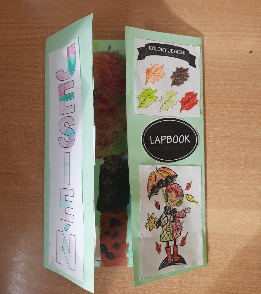 Wrzesień był pełen wrażeń dla pierwszoklasistów. Wiele zabaw integracyjnych i atrakcji takich jak Dzień Kropki, Piknik oraz Festyn pozwoliły lepiej się poznać. W Dniu Chłopaka 1C wybrała się na spacer do Parku Sołackiego obserwując zmiany w przyrodzie, ćwicząc przestrzeganie w ruchu drogowym a na koniec kulturalnie spożywając posiłek w restauracji. Klasa 1C nie zwalnia tempa i tuż po wrześniowym lapbooku ,,Poznajcie mnie” powstał kolejny. Jesienny lapbook kryje nie tylko informacje o porze roku, ale także pięknie pachnie, bo drzewo zostało zrobione z galaretek. Pozostały materiał uczniowie wykorzystali do jesiennych prac plastycznych.