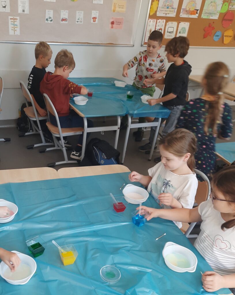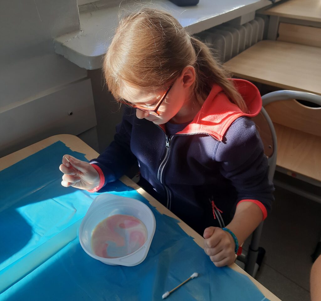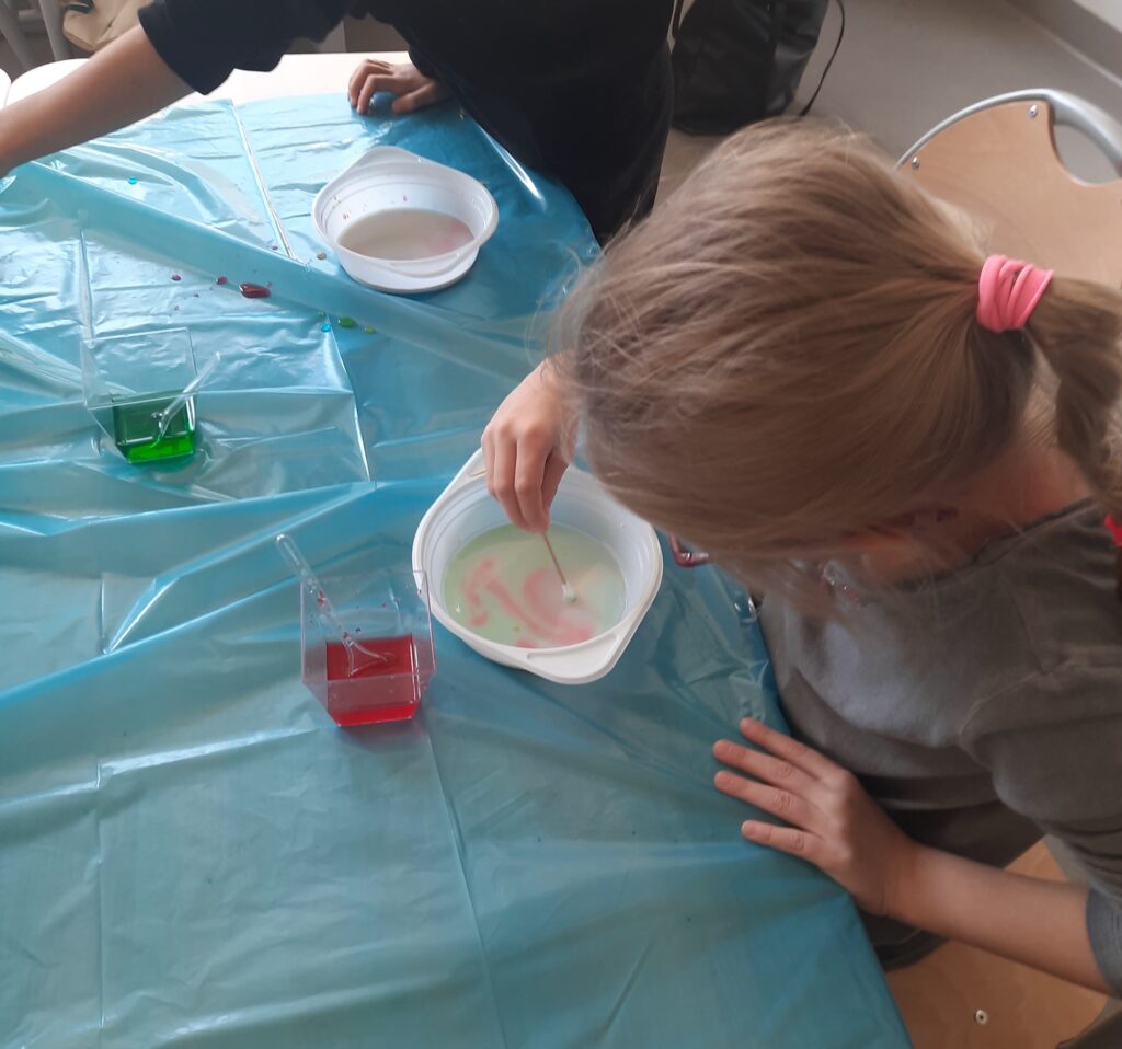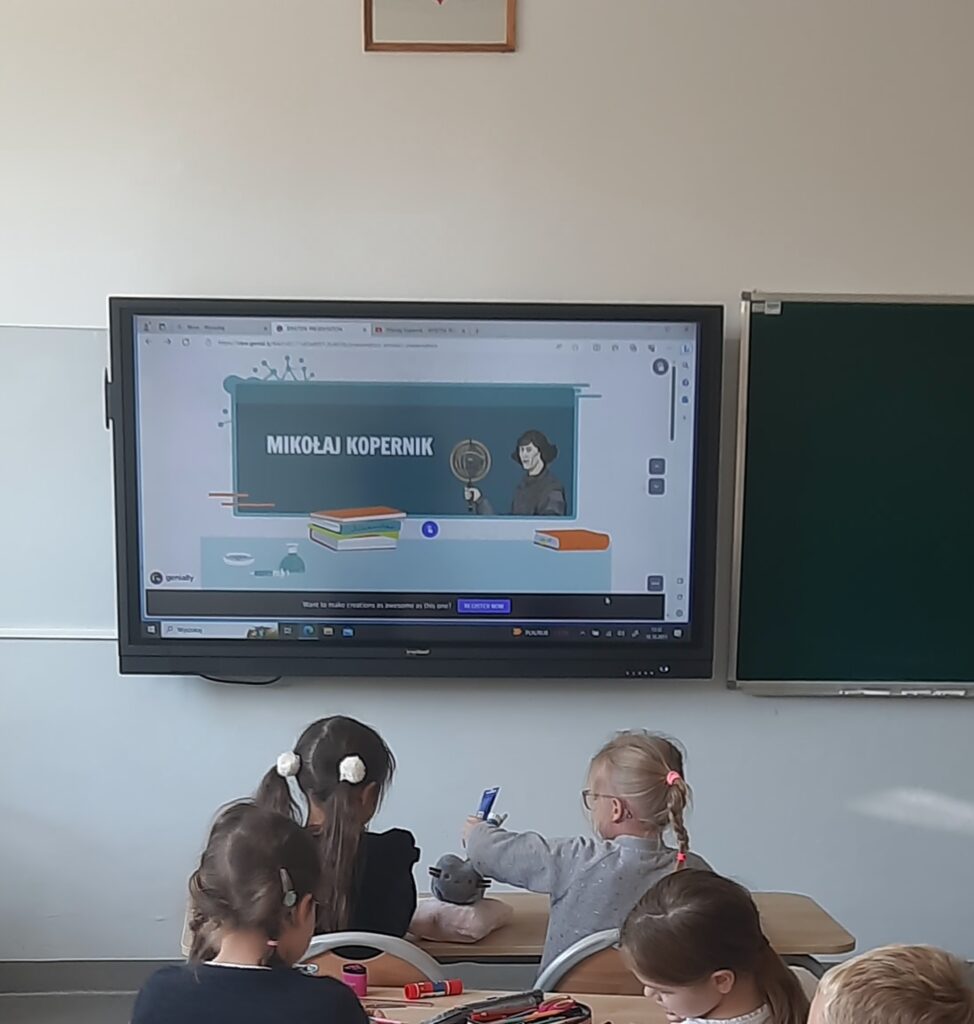 Podczas 2.lekcji z naukowcami klasie 1C została przybliżona postać Mikołaja Kopernika. Uczniowie wykonali eksperyment ,,Malowanie na mleku”. W tym dniu klasa 1C wykorzystała także kartony, odrobinę taśmy oraz dary jesieni. Powstały urocze, jesienne ekraniki.