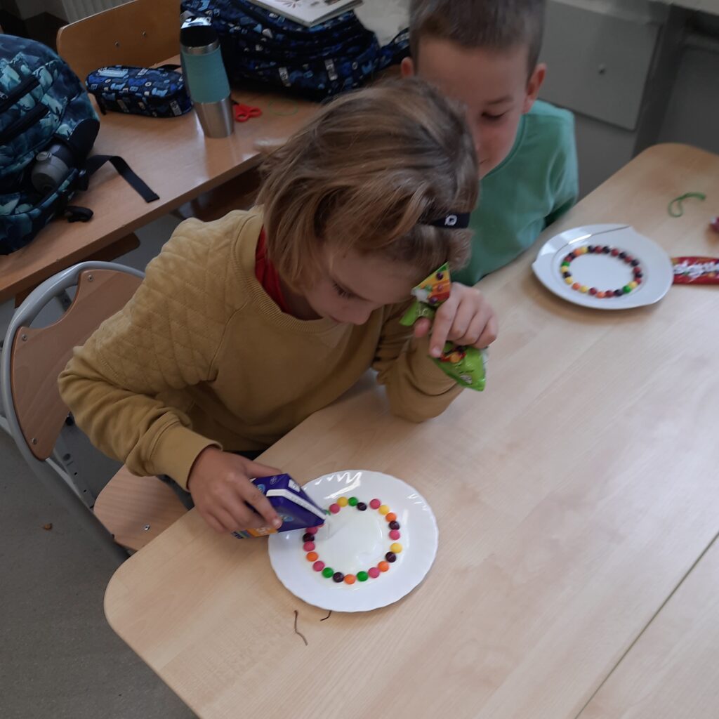 Klasa 1C bierze udział w Ogólnopolskim Projekcie Edukacyjnym ,,Luźne lekcje z naukowcami”. To cykl spotkań, które poprowadzi wychowawca Pani Dominika Zawadzka. Na lekcjach nauczyciel przybliży sylwetki znanych postaci ze świata nauki a uczniowie będą rozwiązywać zadania i łamigłówki. Dodatkowo spróbują swoich sił jako naukowcy, ponieważ za każdym razem będą wykonywać inny eksperyment. Wstępem do projektu było doświadczenie ,,Wędrujące jesienne barwy”.