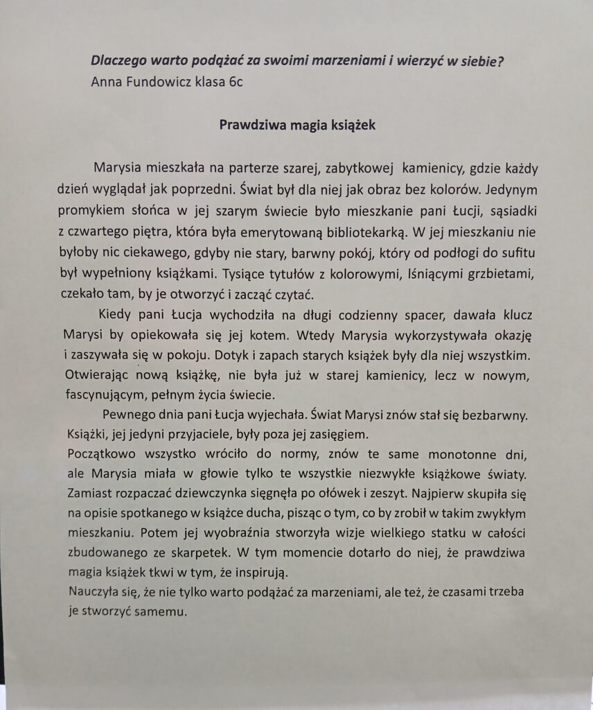 1.,Anna Fundowicz kl. 6c praca pt: „Prawdziwa magia książek „oraz