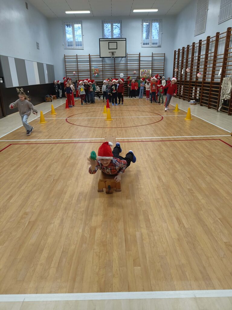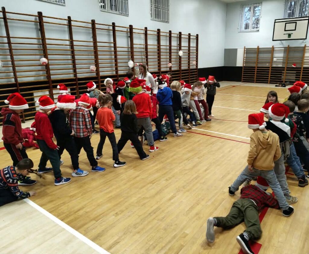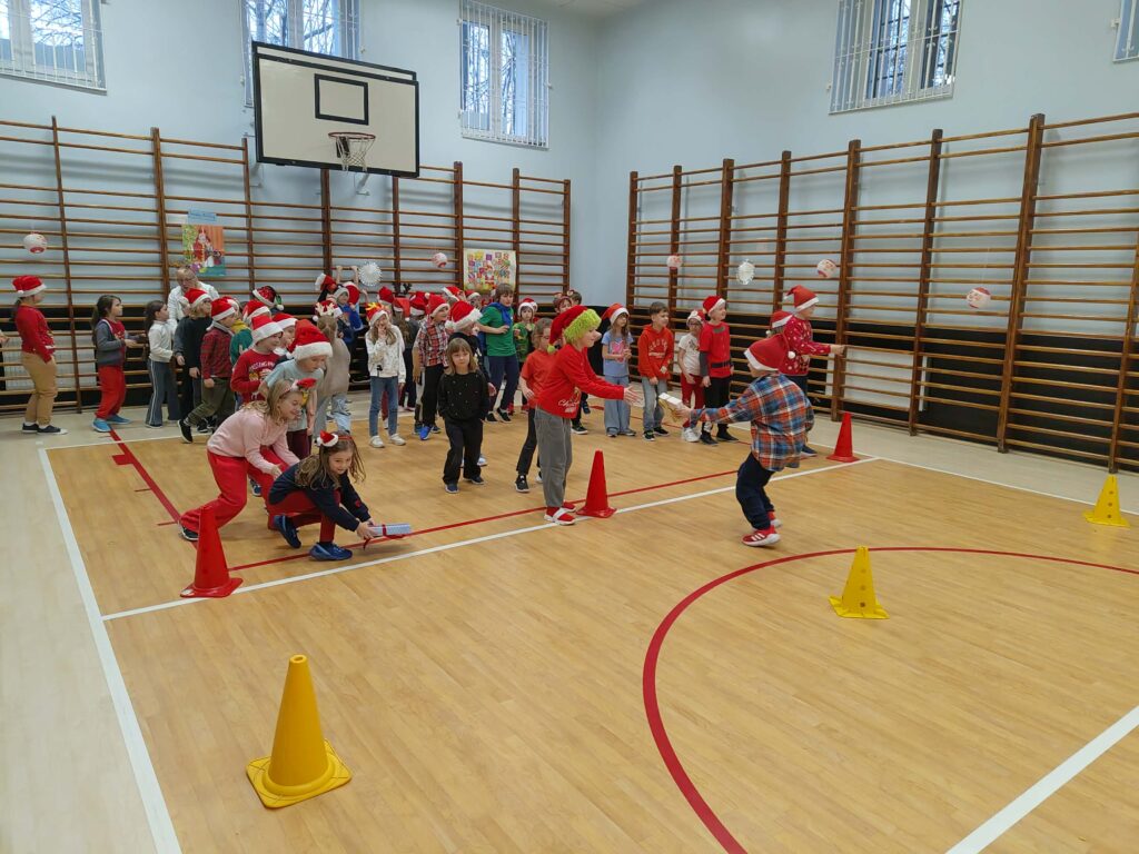 Dzieci zmierzyły się m.in. ze świątecznymi wyścigami, slalomami, zadaniami zręcznościowymi i torami przeszkód, ćwicząc jednocześnie współpracę, zwinność oraz koordynację ruchową. Wspólna aktywność dostarczyła wielu emocji, śmiechu i radości, a muzyka świąteczna towarzyszyła zabawie od początku do końca.