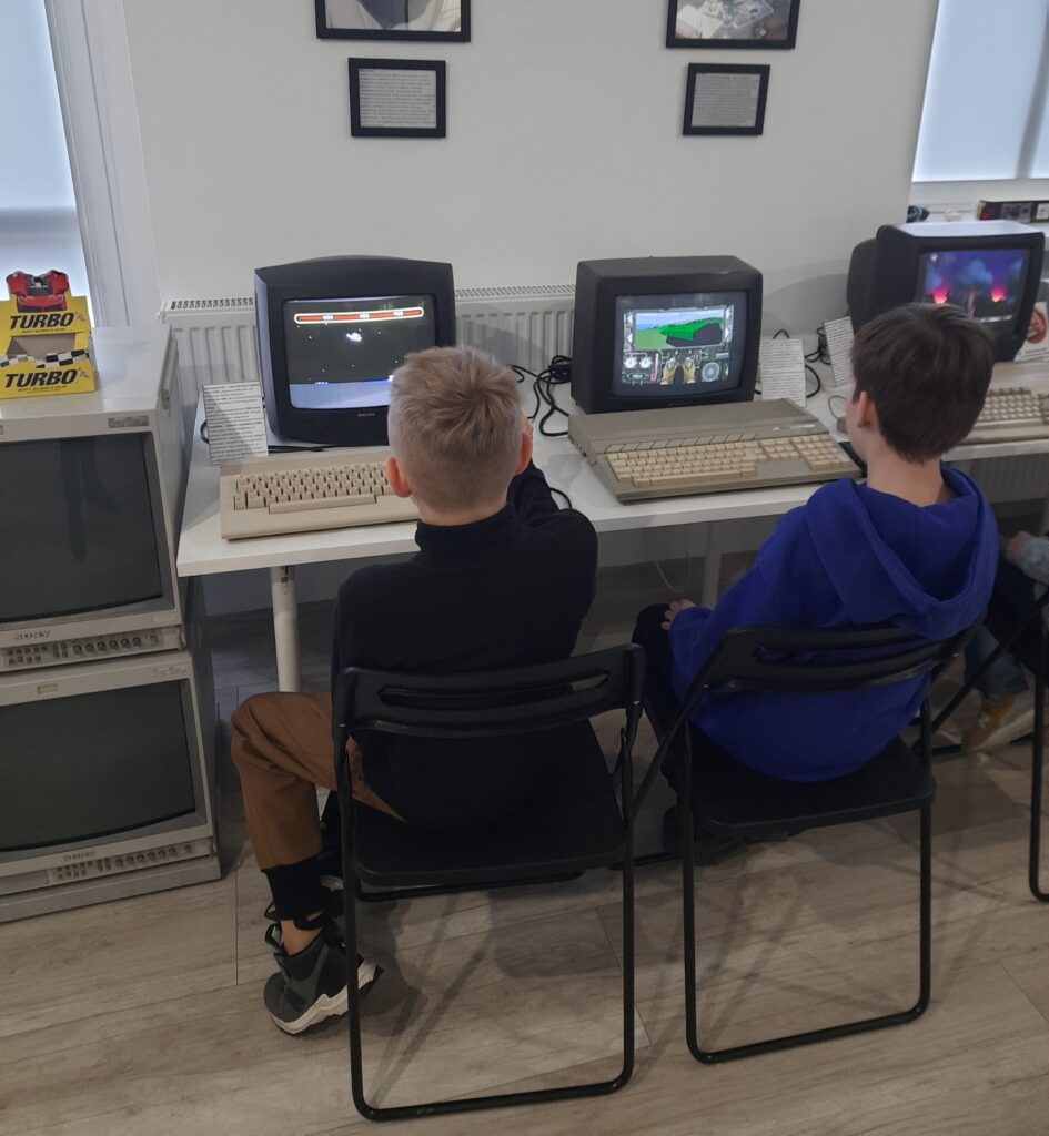 Uczniowie odwiedzający muzeum mieli wyjątkową okazję nie tylko zobaczyć, ale i lepiej zrozumieć działanie komputerów z różnych okresów. Najstarszy z prezentowanych egzemplarzy pochodził z 1976 roku. Dodatkową atrakcją była możliwość skorzystania z konsoli oraz klasycznych automatów do gier, co sprawiło dzieciom wiele radości.