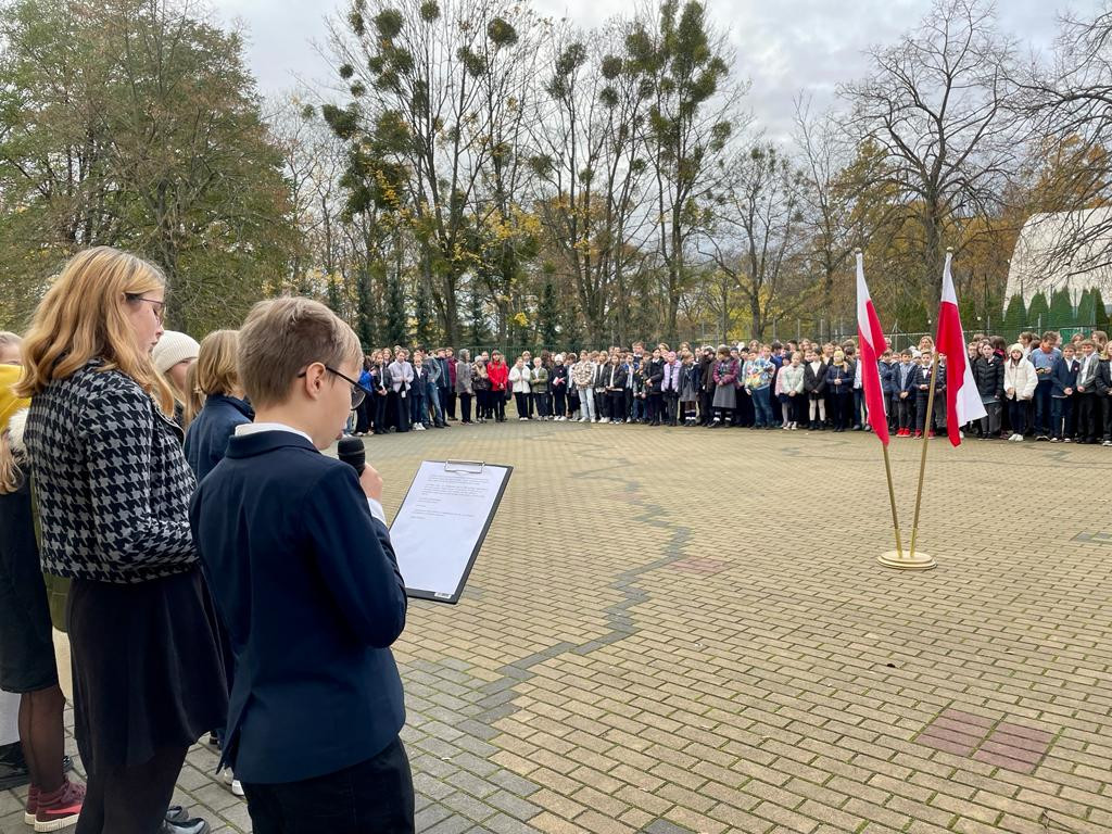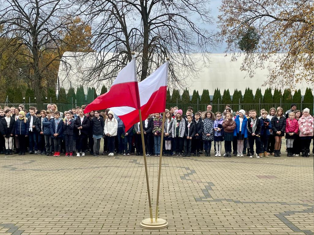 W naszej szkole 10 listopada obchodziliśmy Narodowe Święto Niepodległości. Uroczystość upamiętniająca 105 rocznicę odzyskania niepodległości, zaczęła się od odśpiewania hymnu państwowego o godzinie 11:11 w ramach akcji Szkoła do hymnu. Następnie uczniowie zapoznali się z wydarzeniami historycznymi oraz wspólnie zaśpiewaliśmy pieśni patriotyczne tj. Marsz Pierwszej Brygady czy Co to jest niepodległość.