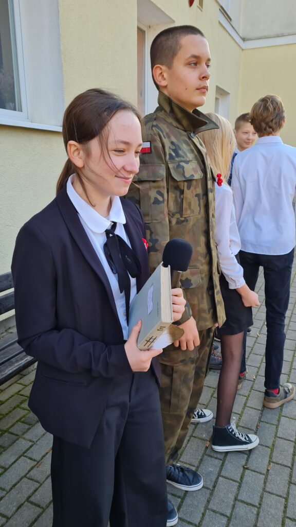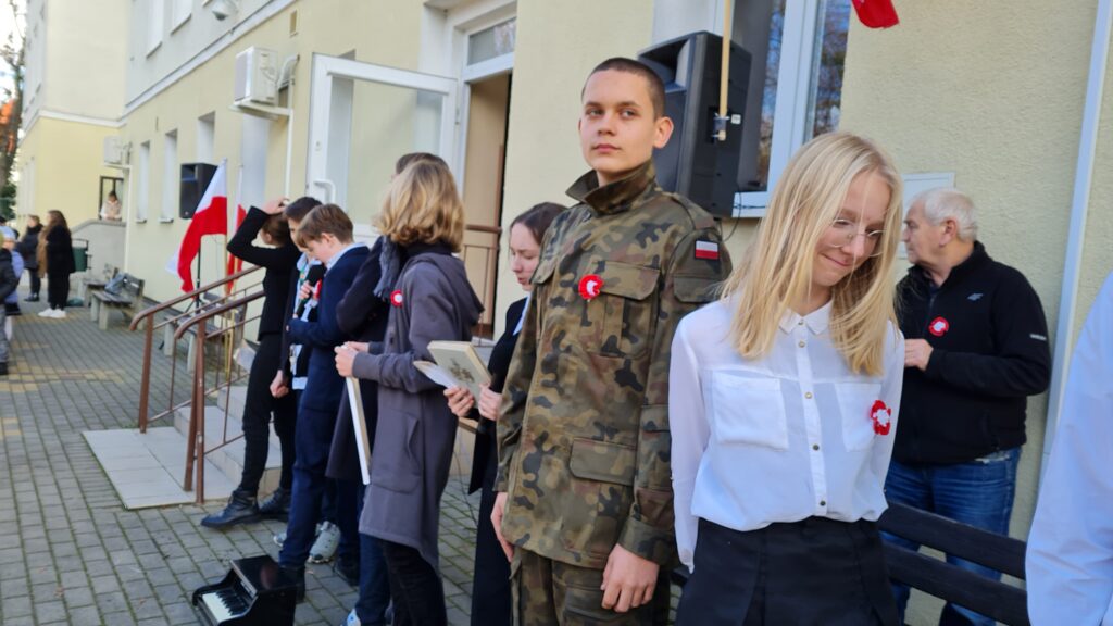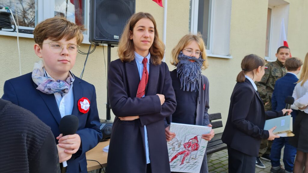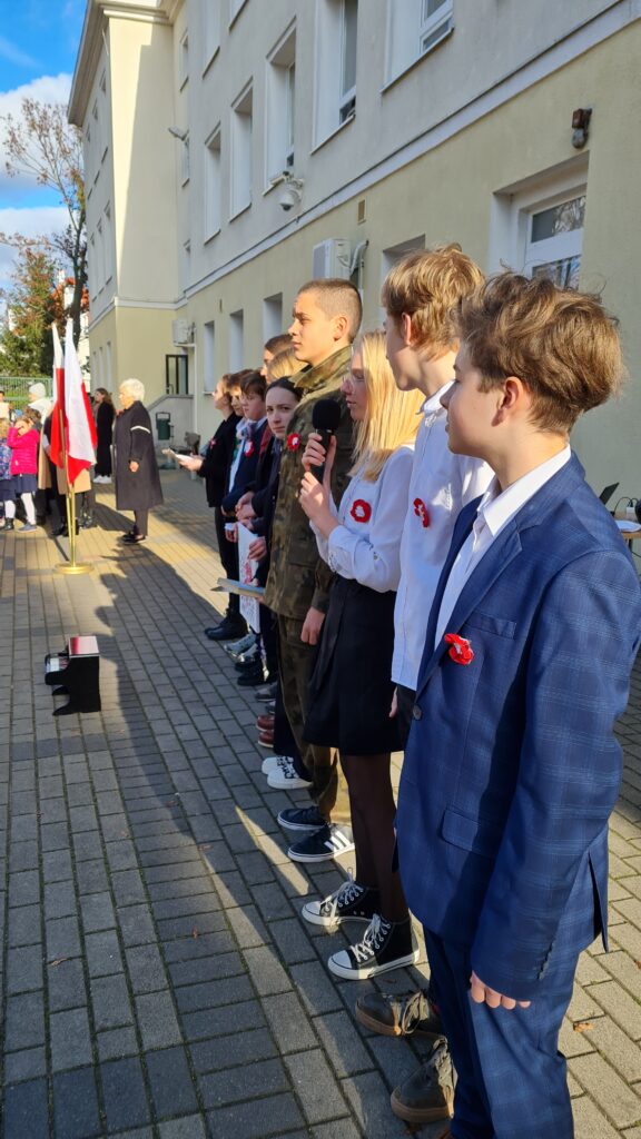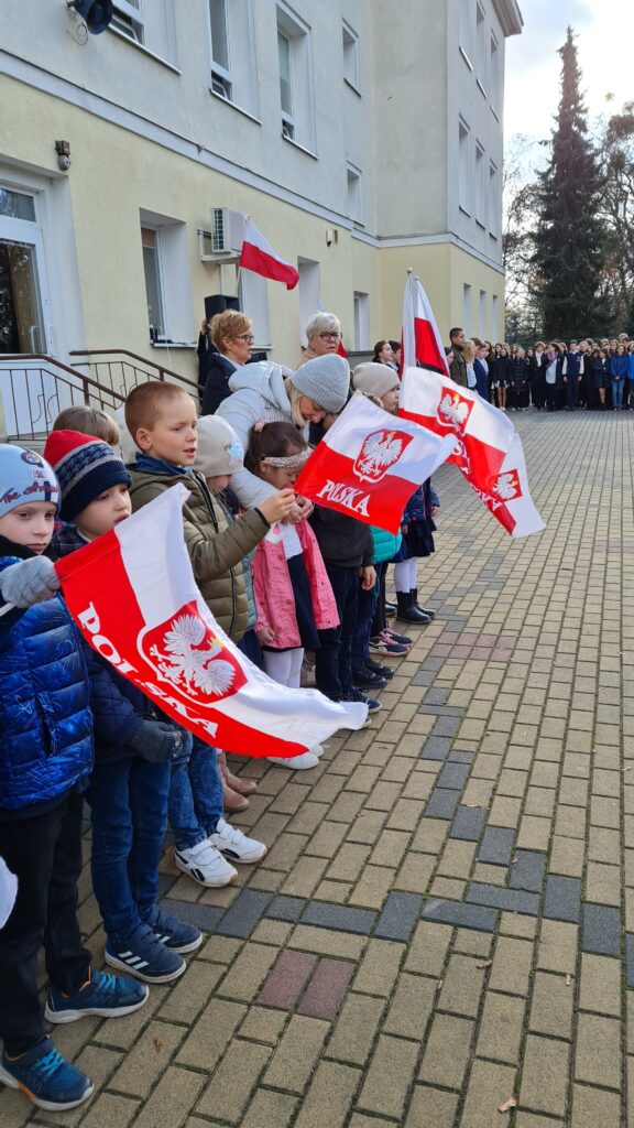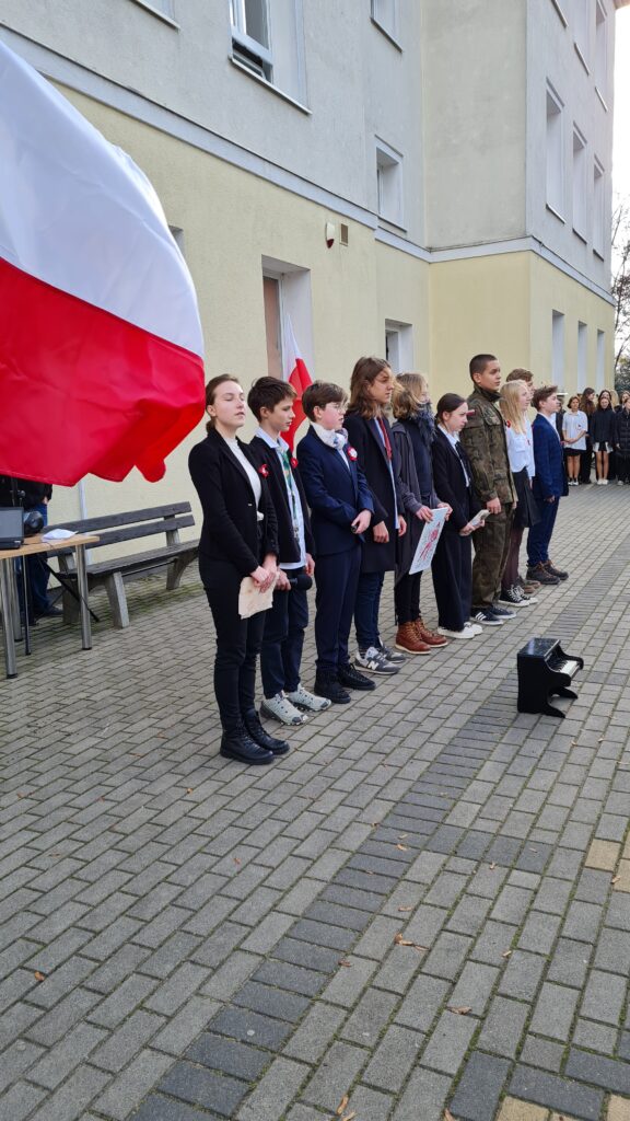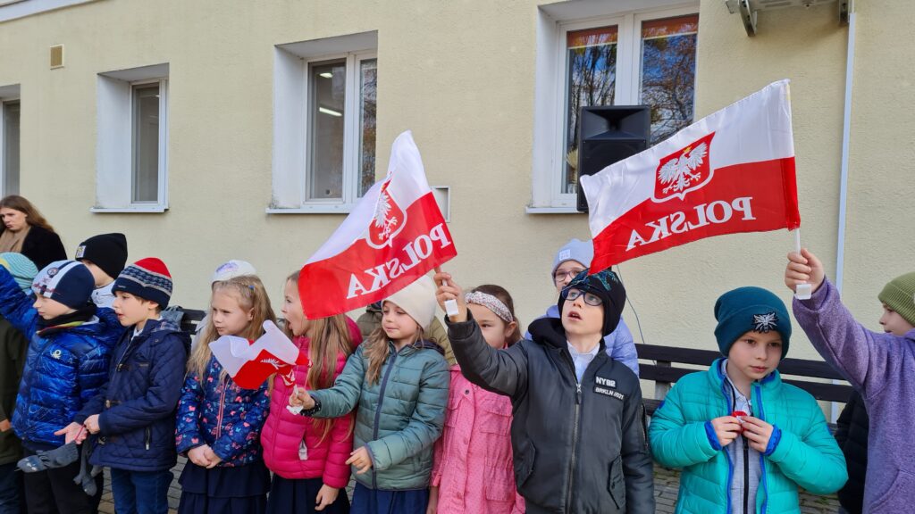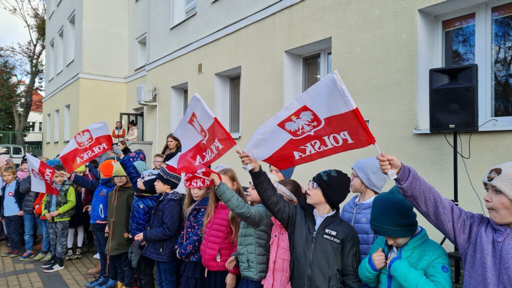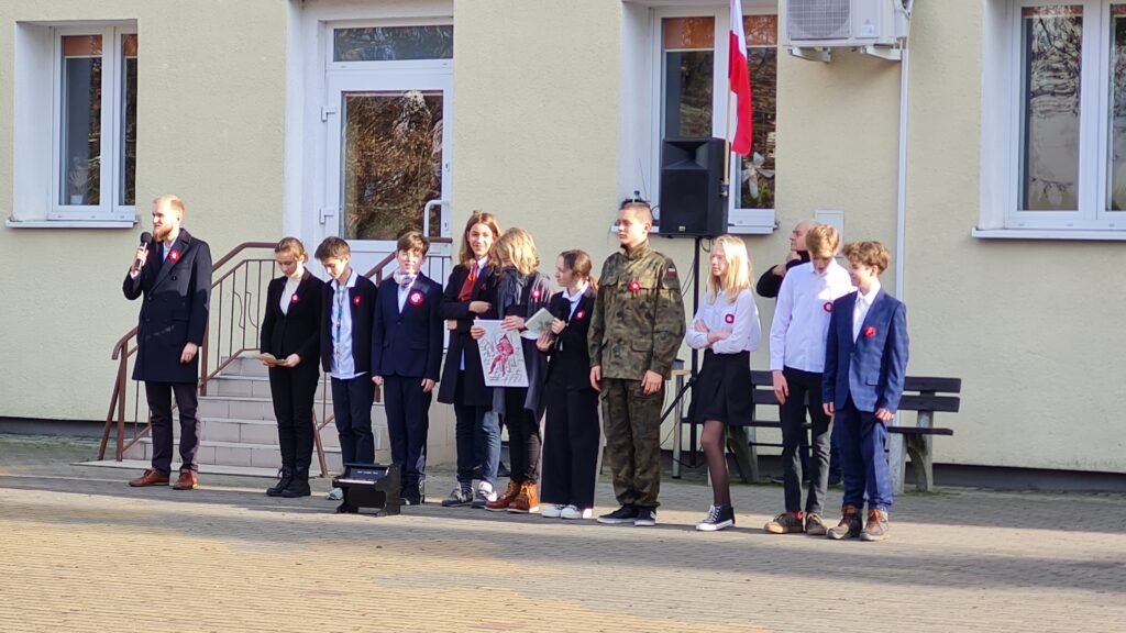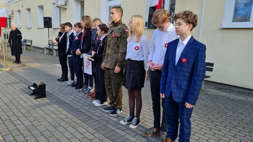 W naszej szkole 10 listopada obchodziliśmy Narodowe Święto Niepodległości. Uroczystość upamiętniająca odzyskanie niepodległości zaczęła się od odśpiewania hymnu państwowego o godzinie 11:11 w ramach akcji „Szkoła do hymnu”. Następnie uczniowie zapoznali się z wydarzeniami i sylwetkami postaci historycznych oraz wspólnie zaśpiewaliśmy pieśni patriotyczne tj. Marsz Pierwszej Brygady czy Co to jest niepodległość.