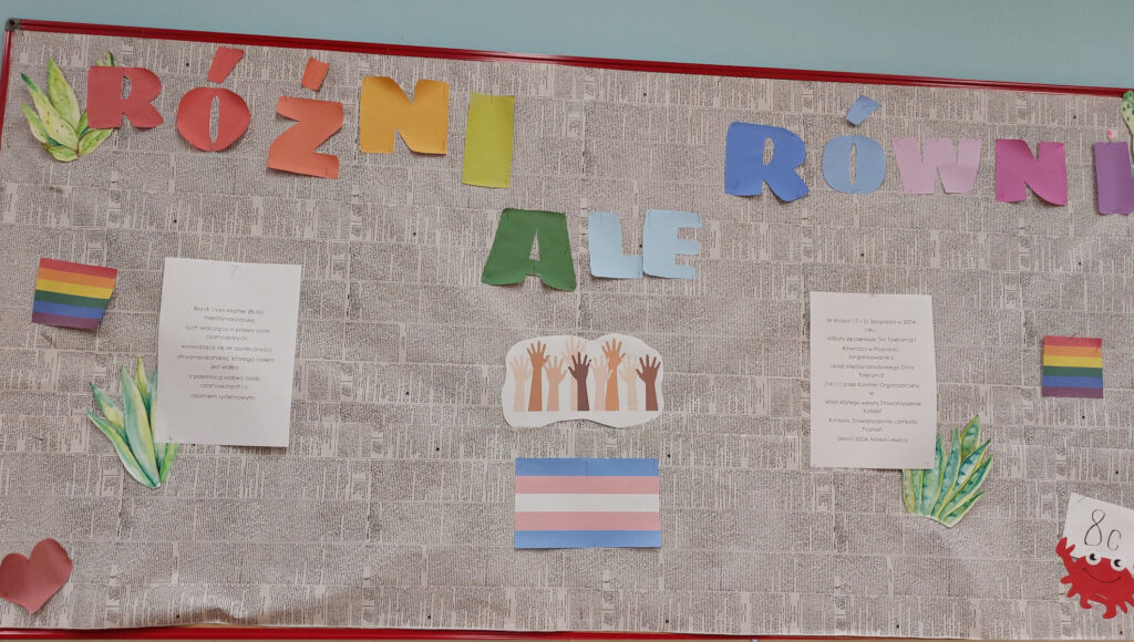 Pod hasłem „Każdy inny – wszyscy równi” celebrowaliśmy naszą różnorodność. Rozmawialiśmy o akceptacji, wrażliwości i gotowości służenia pomocą. Rozwijaliśmy postawy wyrozumiałości w stosunku do ludzi innej narodowości, pochodzenia, poglądów czy wartości. Uczyliśmy się szacunku dla osób niepełnosprawnych.