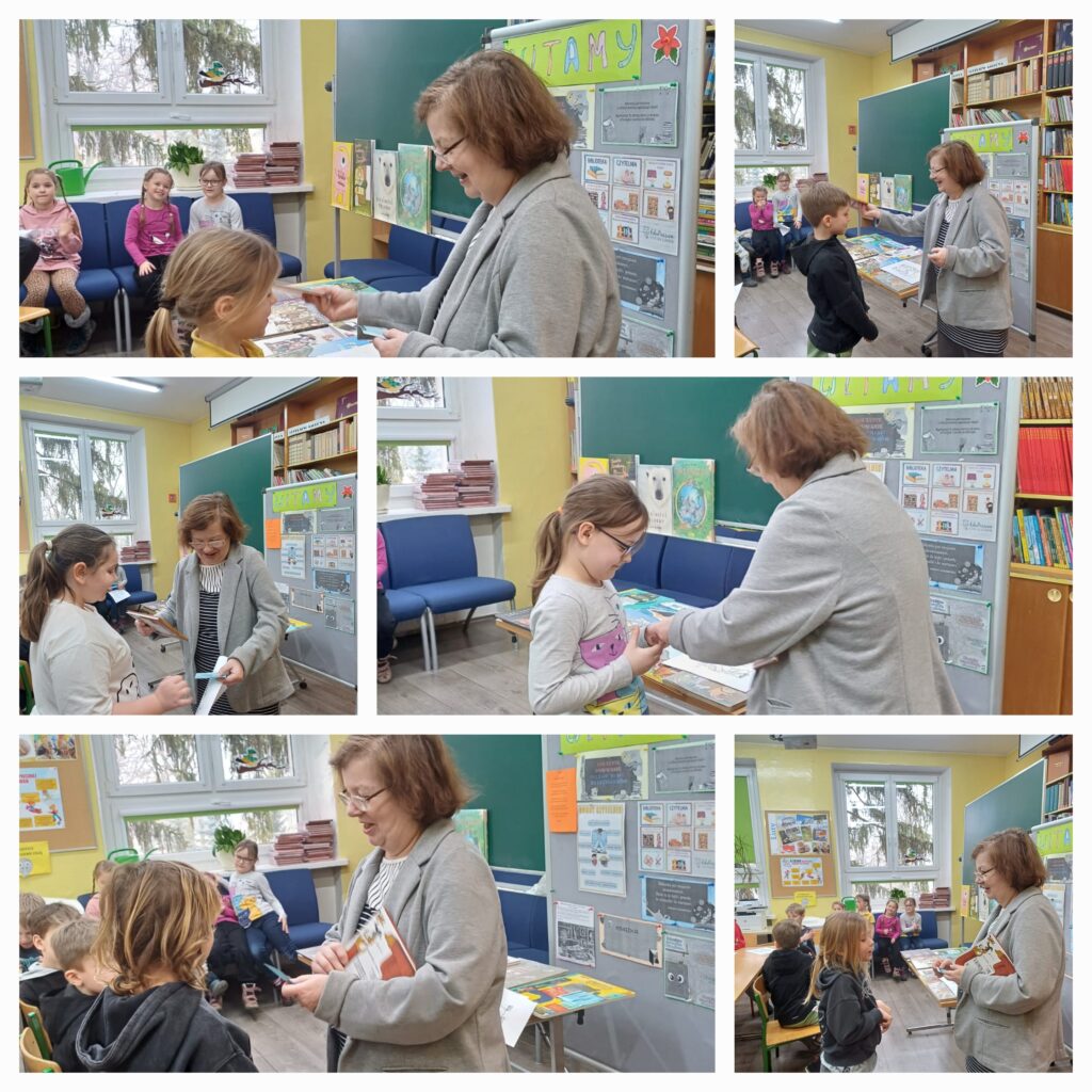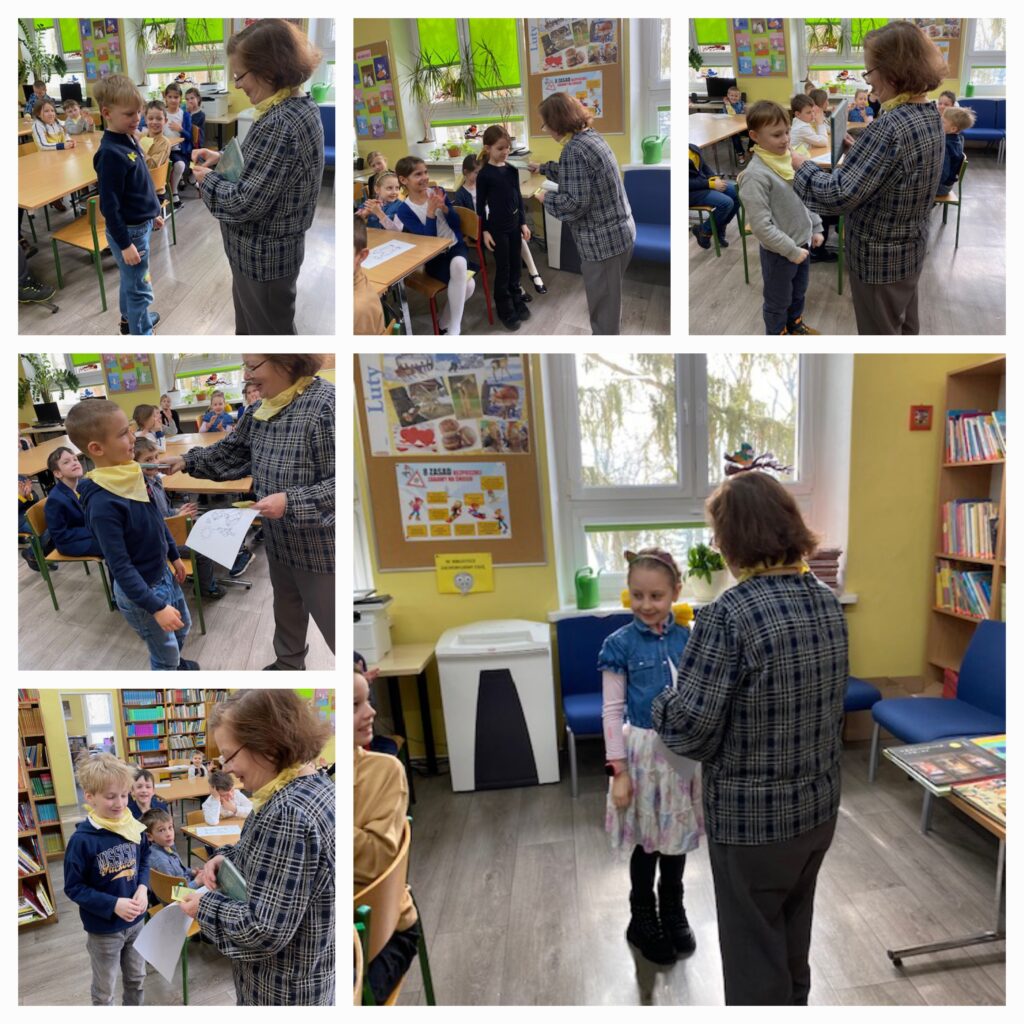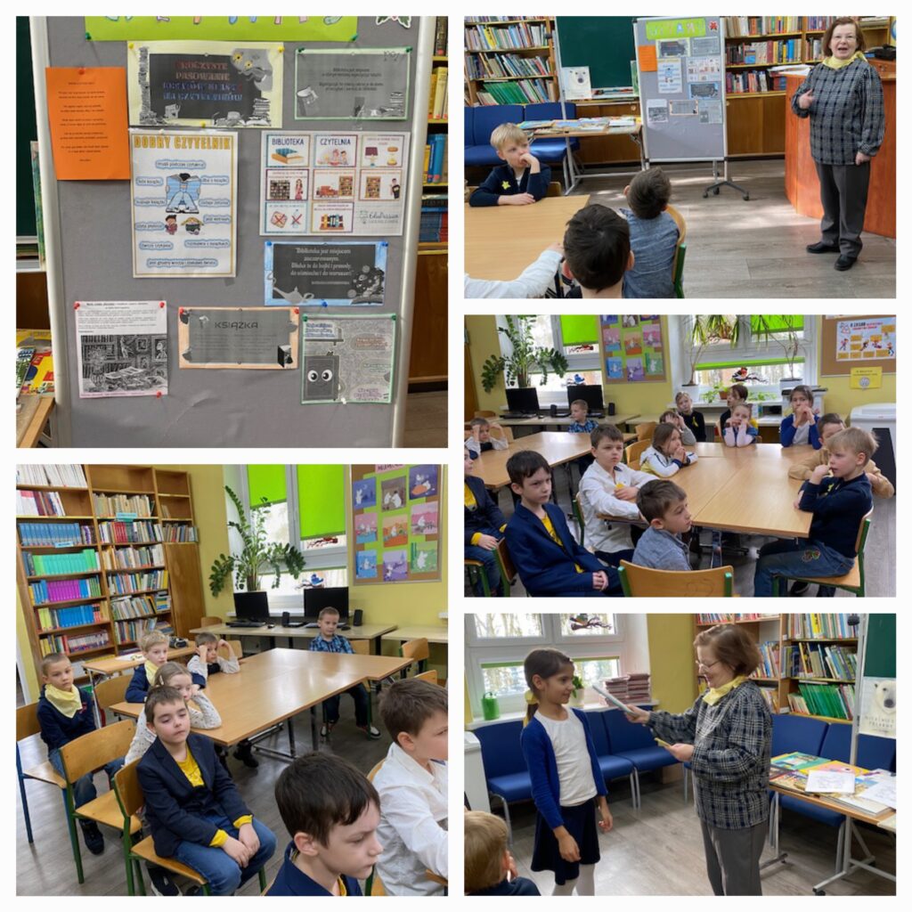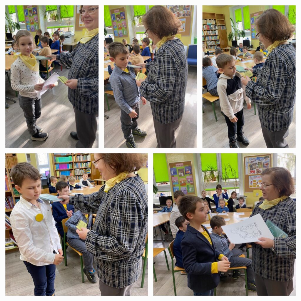 W pierwszej części spotkania nasi pierwszoklasiści otrzymali sporo informacji na temat regulaminu wypożyczania, zasad postępowania z książkami, a także o zasadach zachowania, jaki powinni przestrzegać będąc w bibliotece.