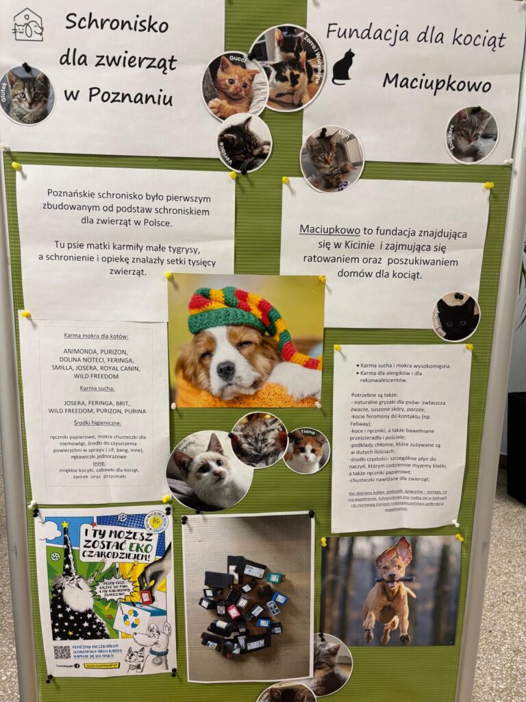 Zebrane dary trafiły do zwierząt ze Schroniska dla Zwierząt w Poznaniu oraz podopiecznych Fundacji Maciupkowo z Kicina. Wszystkie te działania pokazały, jak wiele dobra, empatii i wrażliwości drzemie w naszej szkolnej społeczności.