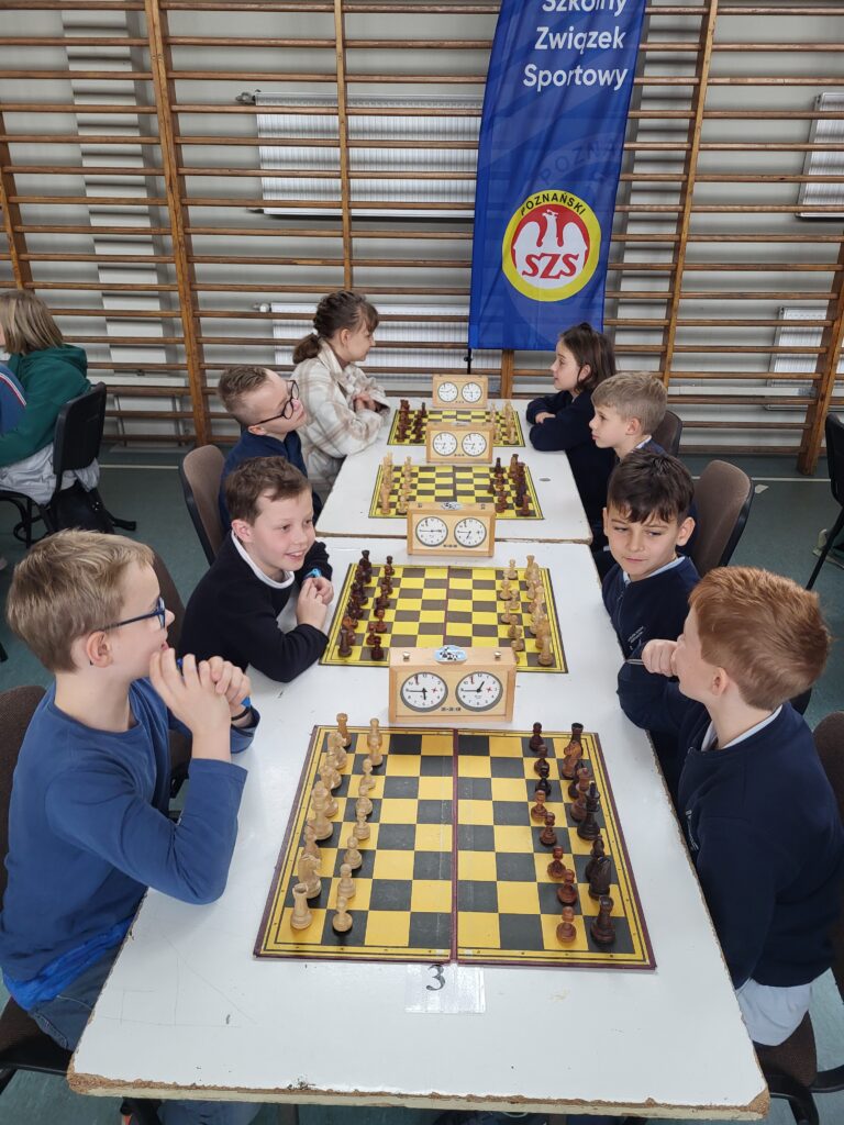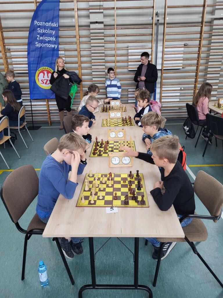 Uczniowie: Leon Jórdeczka (3b), Franciszek Kwiatek (4a), Jan Nowak (5a) oraz Weronika Jankowska (5a) 5 listopada wzięli udział w Poznańskich Igrzyskach Młodzieży Szkolnej w szachach drużynowych reprezentując naszą szkołę.
