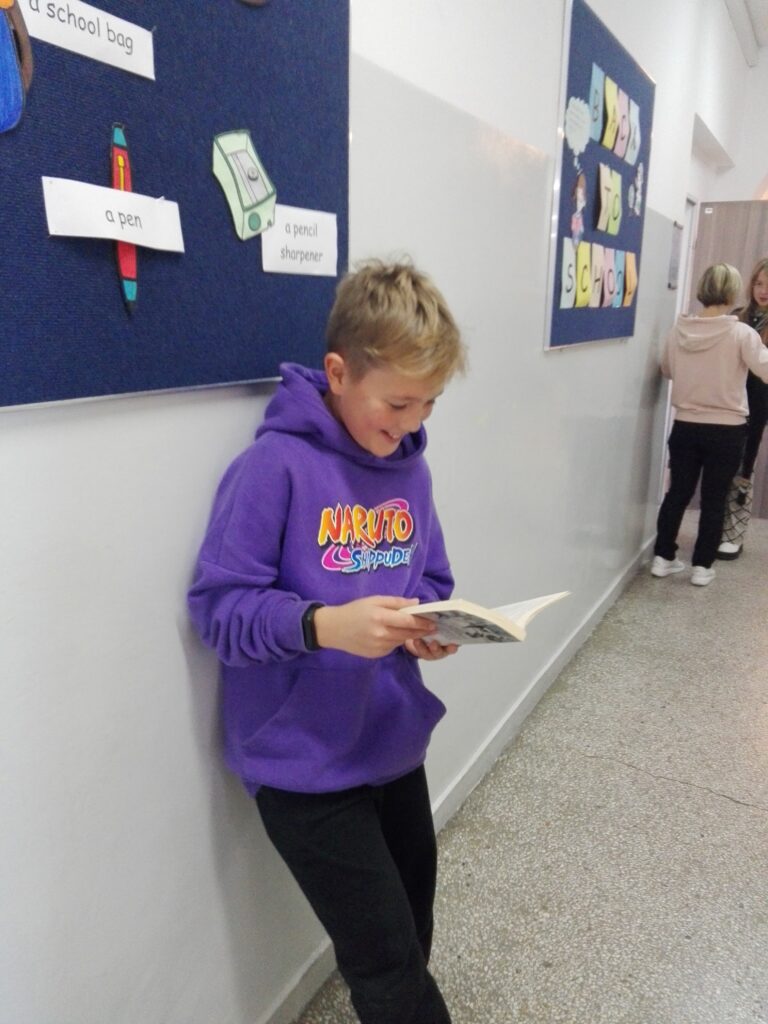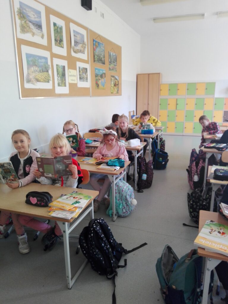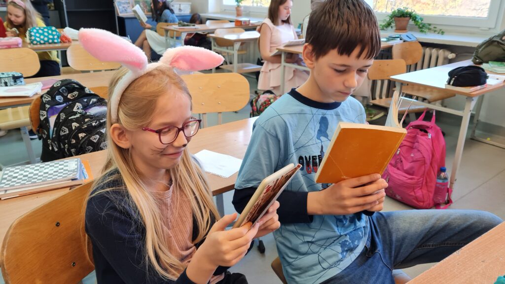 Dziś nasza szkoła po raz pierwszy wzięła udział w akcji „Przerwa na czytanie” czyli bicia rekordu w czytaniu na przerwie. Większość uczniów z klas młodszych oraz starszych przyniosło dziś ze sobą ulubione książki i podczas przerwy czytało je samemu lub w towarzystwie kolegów. W „Przerwie na czytanie” wzięli udział także nauczyciele.