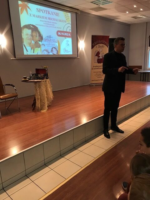6 października 2022 r. w Domu Kultury Bajka uczniowie klasy 2 c spotkali się z panem Markiem Michalakiem Rzecznikiem Praw Dziecka, autorem książki „Opowieści o tym, co w życiu ważne” i najmłodszym 23 letnim Kawalerem Orderu Uśmiechu w Polsce.
