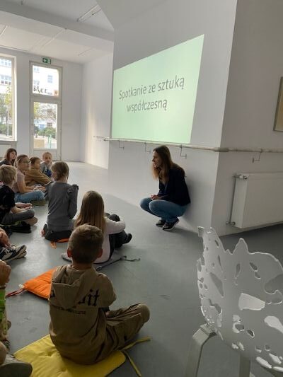 3 października 2025 r. uczniowie 2 b wybrali się do Galerii Rodriguez na Spotkanie ze sztuką współczesną. Mieli okazję podziwiać prace artysty z Chile. Dowiedzieli się, że twórcy łączą różne formy sztuki i wykorzystują innowacyjne materiały, a ich dzieła poruszają ważne problemy społeczne i polityczne.