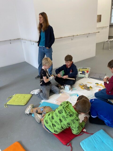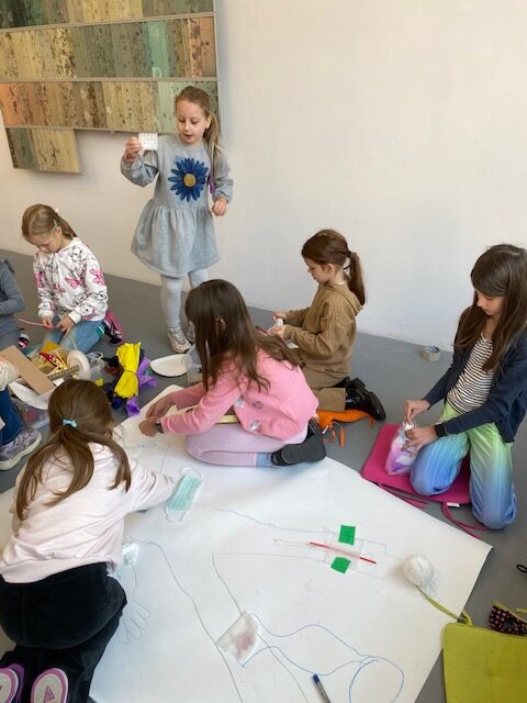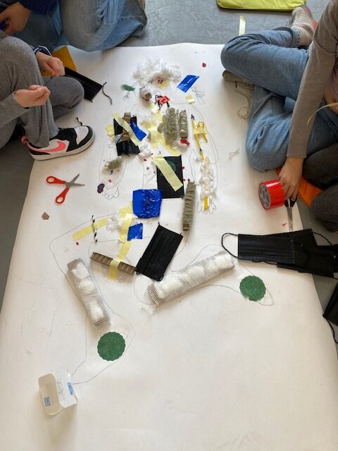 Następnie wykazali się kreatywnością tworząc własne prace techniką kolażu korzystając z różnych materiałów i tworzyw. Tematem przewodnim ich wytworów było udzielania pierwszej pomocy.