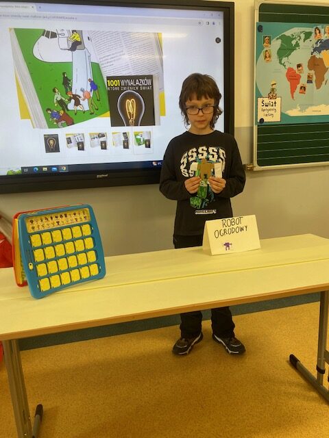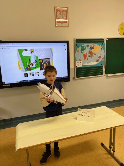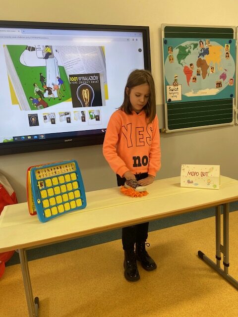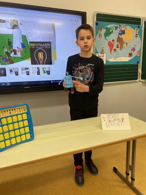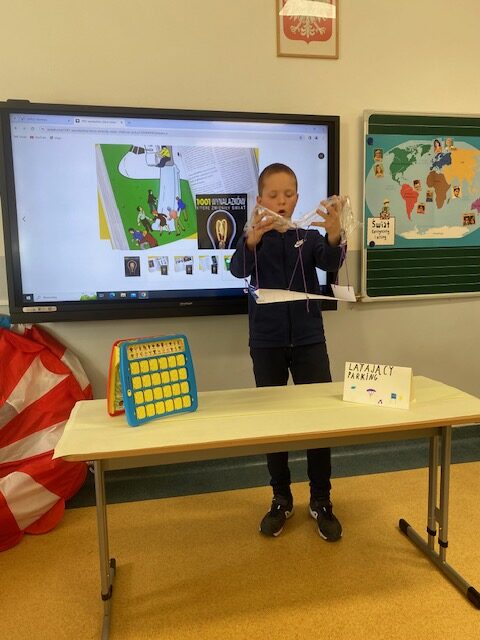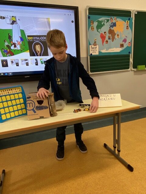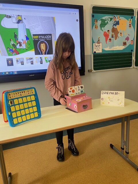 Realizując w klasie 3 c zajęcia -Zabawa w naukowców-uczniowie szukając innowacyjnych rozwiązań stworzyli spektakularne przedmioty przyszłości. Zainspirowani wynalazkami Marii Skłodowskiej-Curie dążyli do tego, aby ich produkt przyniósł korzyści kolejnym pokoleniom. W tym celu snuli pomysły, projektowali, wycinali, sklejali, ozdabiali i testowali swoje dzieła.