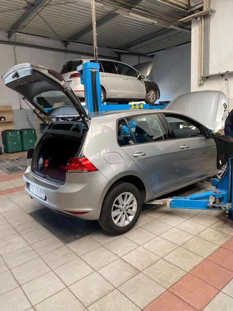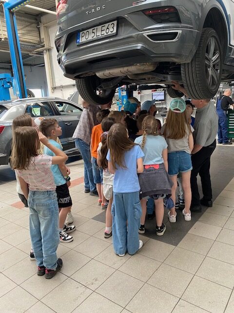 Następnie udali się do serwisu samochodowego. Tam, dzięki panom Tomaszowi i Maciejowi Berdychowskim oraz mechanikom, zaznajomili się z budową samochodu, wykonywaniem diagnostyki samochodowej, przeprowadzaniem napraw elektromechanicznych, wykonywaniem przeglądów okresowych, prowadzeniem dokumentacji serwisowej, znajomością przepisów BHP.