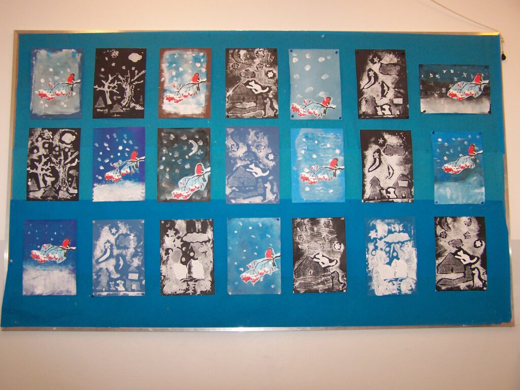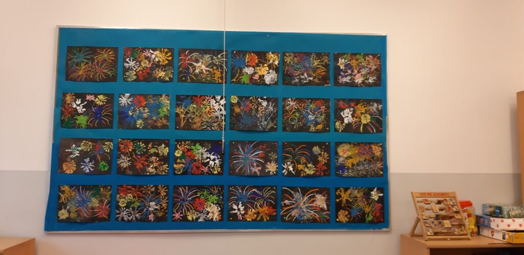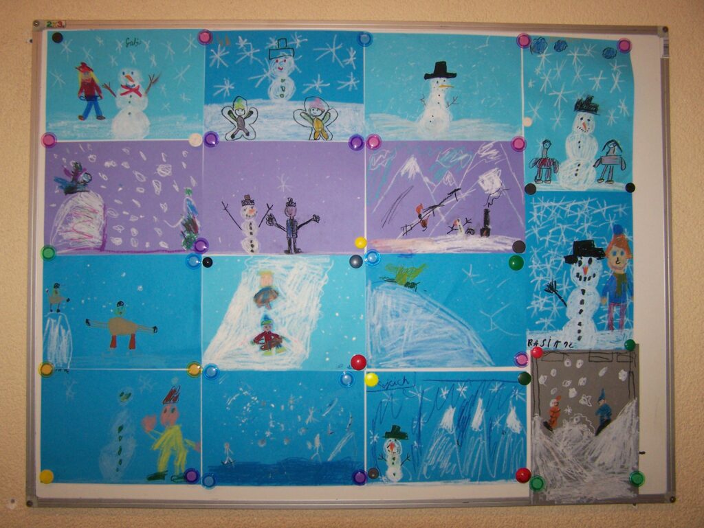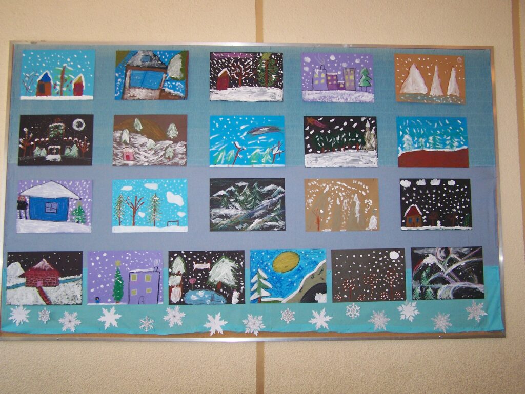 – tworzyliśmy piękne prace plastyczne prezentujące zimowe krajobrazy, chociaż w naszym otoczeniu śnieg pojawiał się niezwykle rzadko,