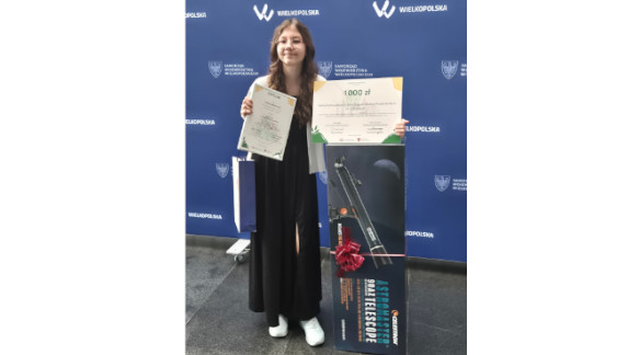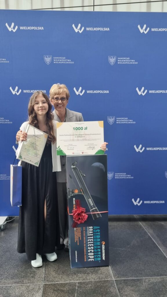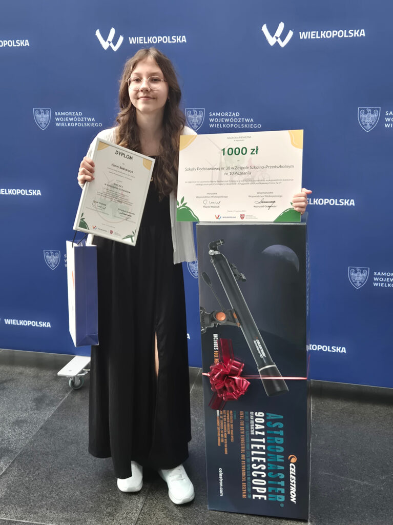 Uroczysta gala wręczenia nagród odbyła się 17 czerwca w Urzędzie Marszałkowskim w Poznaniu. Hania otrzymała cenną nagrodę – teleskop, a pani dyrektor Lucyna Podolak odebrała nagrodę pieniężną w wysokości 1000 zł, przyznaną przez Zarząd Województwa Wielkopolskiego jako dodatkowe wyróżnienie dla placówek, z których pochodzą laureaci.