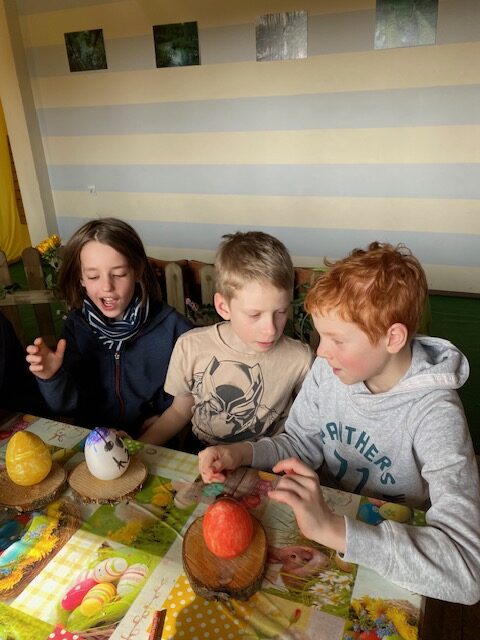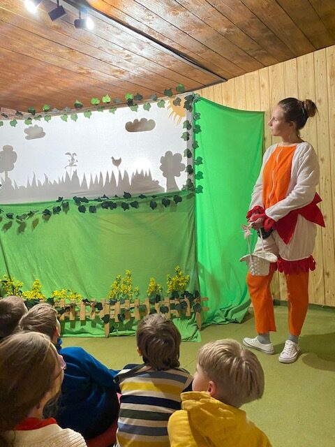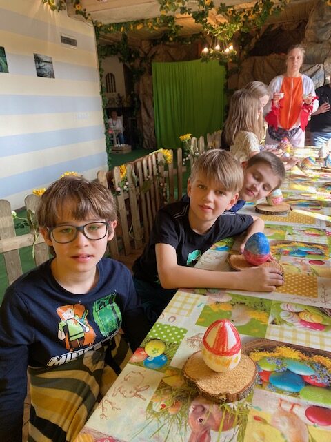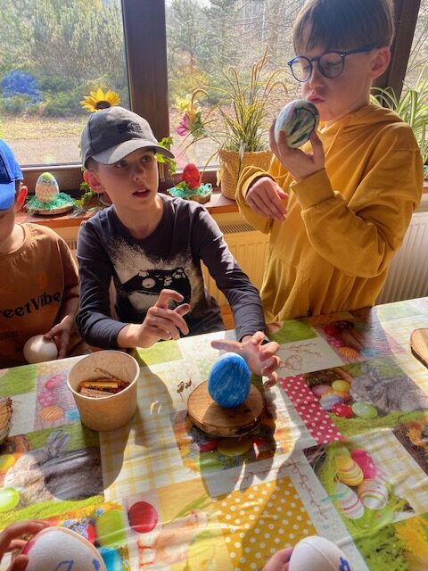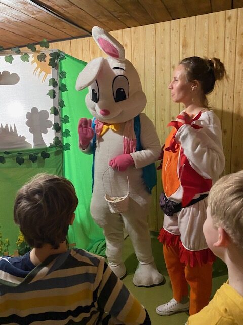 Tańcem, śpiewem, zabawą pożegnali zimę i przywitali wiosnę. Szukając tropów i rozwiązując zagadki znaleźli norkę Wielkanocnego zajączka. Obejrzeli interaktywny teatrzyk cieni. Następnie przygotowali dla najbliższych własnoręcznie wykonaną ozdobę wielkanocną.