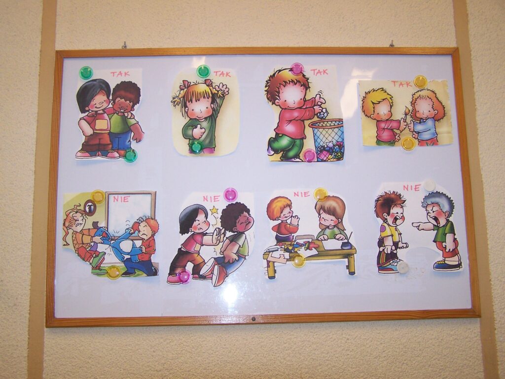 Pierwsze dni w świetlicy poświęciliśmy nie tylko na poznanie lub przypomnienie ważnych zasad, ale przede wszystkim na rozmowy o relacjach koleżeńskich, o życzliwości, niesieniu pomocy, zasadach kultury, o wspólnej trosce o miłą, serdeczną atmosferę, aby czas spędzony w świetlicy był przyjemny, wesoły i wartościowy.