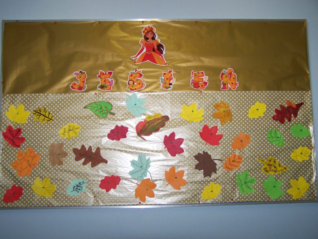 Na zajęciach w salach koncentrowaliśmy się na jesiennych obrazkach i łamigłówkach, a także zagadkach, planszach i prezentacjach tematycznie powiązanych z nową porą roku. Jednak pełnię tej pory roku na pewno będziemy podziwiać w kolejnym miesiącu. Wówczas świetlicowe sale staną się jeszcze bardziej jesienne, a nasze tematyczne zabawy na terenach przyszkolnych z całą pewnością zostaną wzbogacone o leżące pod drzewami duże ilości liści.
