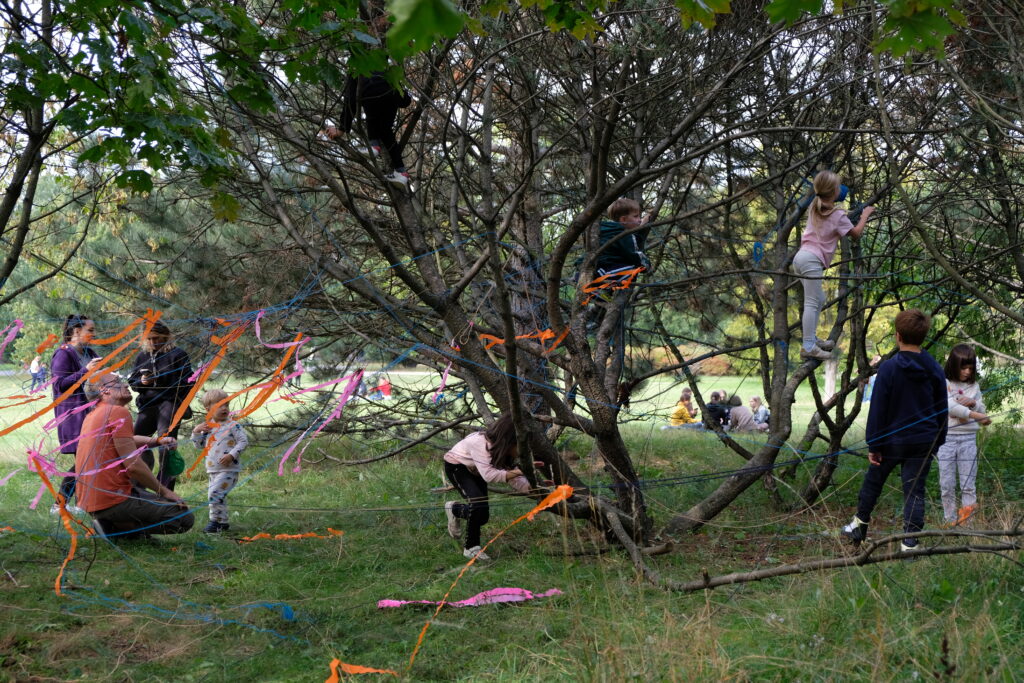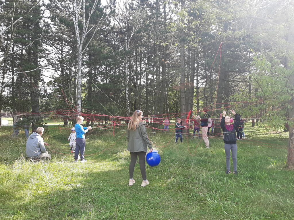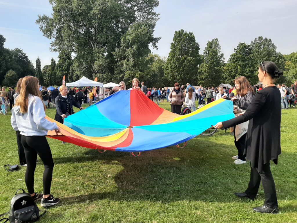 W piękny, ciepły, słoneczny dzień, 24.09.2022 r., spotkaliśmy się w Parku Cytadela na Starowinogradzkim Pikniku Jesiennym, bawiąc się i uczestnicząc w różnorodnych propozycjach działań. Wśród nich znalazły się zabawy z kolorową chustą oraz Landart (sztuka w krajobrazie), w ramach którego uczniowie wraz z opiekunami tworzyli własne instalacje przy użyciu kolorowych włóczek i krepy na zielonych, zadrzewionych obszarach Cytadeli. Wszyscy uczestnicy dobrze się bawili i miło spędzali czas.