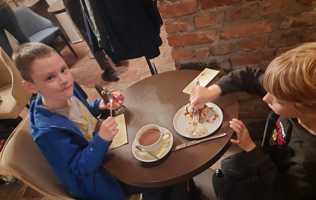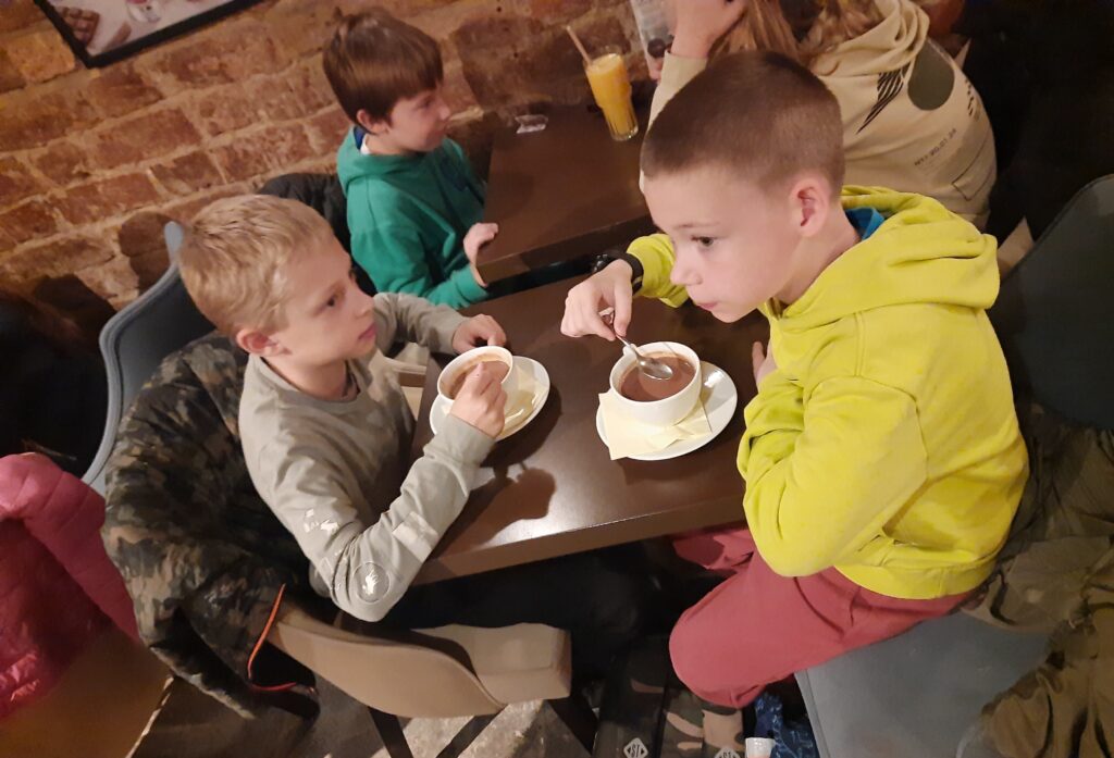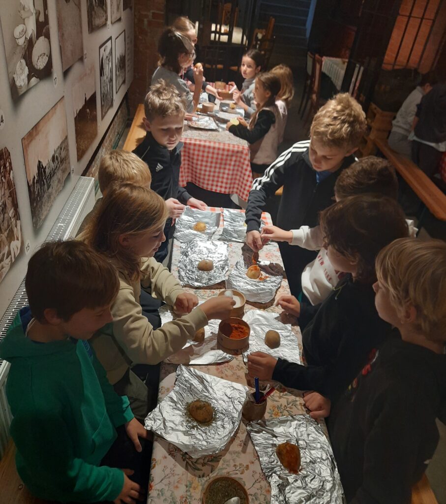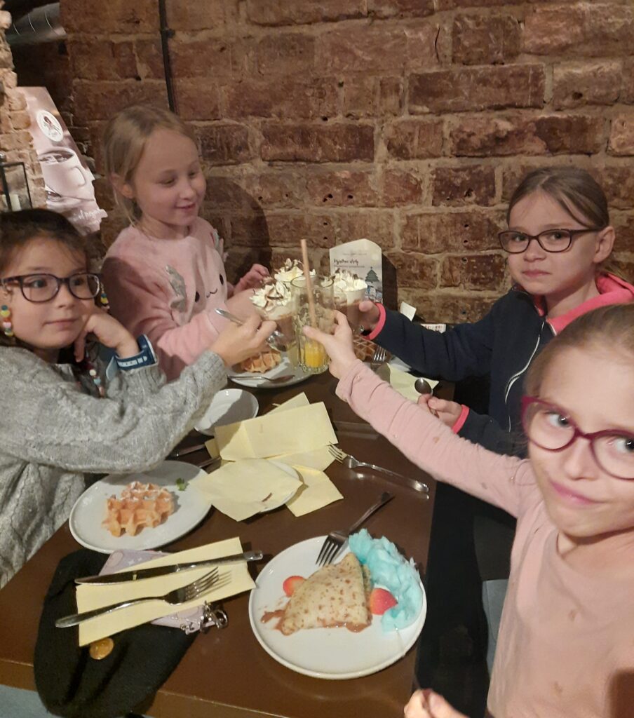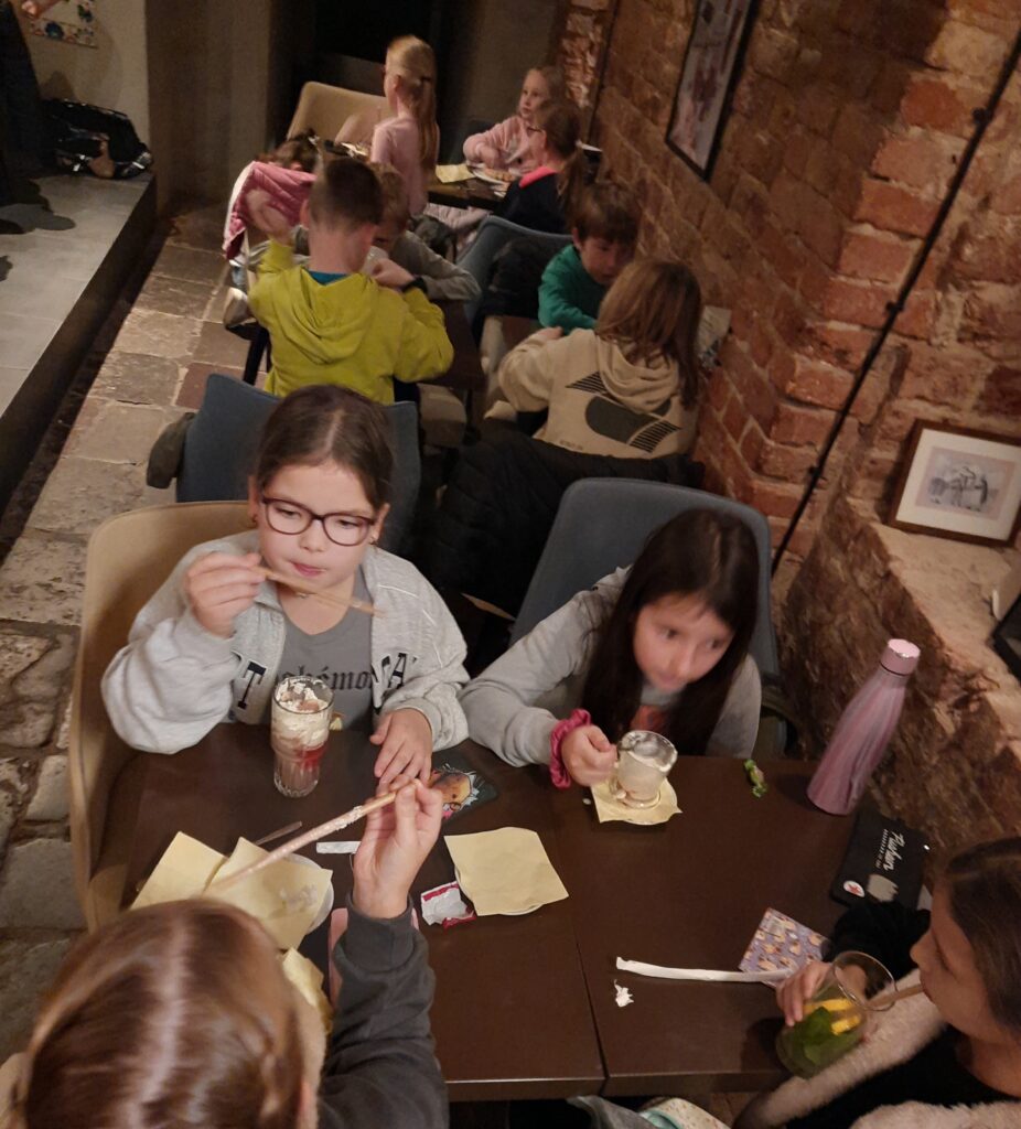 Uczniowie podczas warsztatów w Muzeum Pyry sporo dowiedzieli się o naszym produkcie regionalnym, czyli o ziemniakach. Sami przyrządzili swoje pyry. Kolejną częścią wyjścia było zwiedzanie Wzgórza Przemysła i podziwianie widoków z tarasu na wieży. Na koniec klasa delektowała się przysmakami w Pijalni Czekolady E.Wedel. Wszyscy uczniowie wiedzieli jak należy zachowywać się w kawiarni oraz kulturalnie odnosili do obsługi. Każdy ćwiczył liczenie pieniędzy, płacąc za swoje zamówienie. Podsumowując – 2c spisała się na medal!